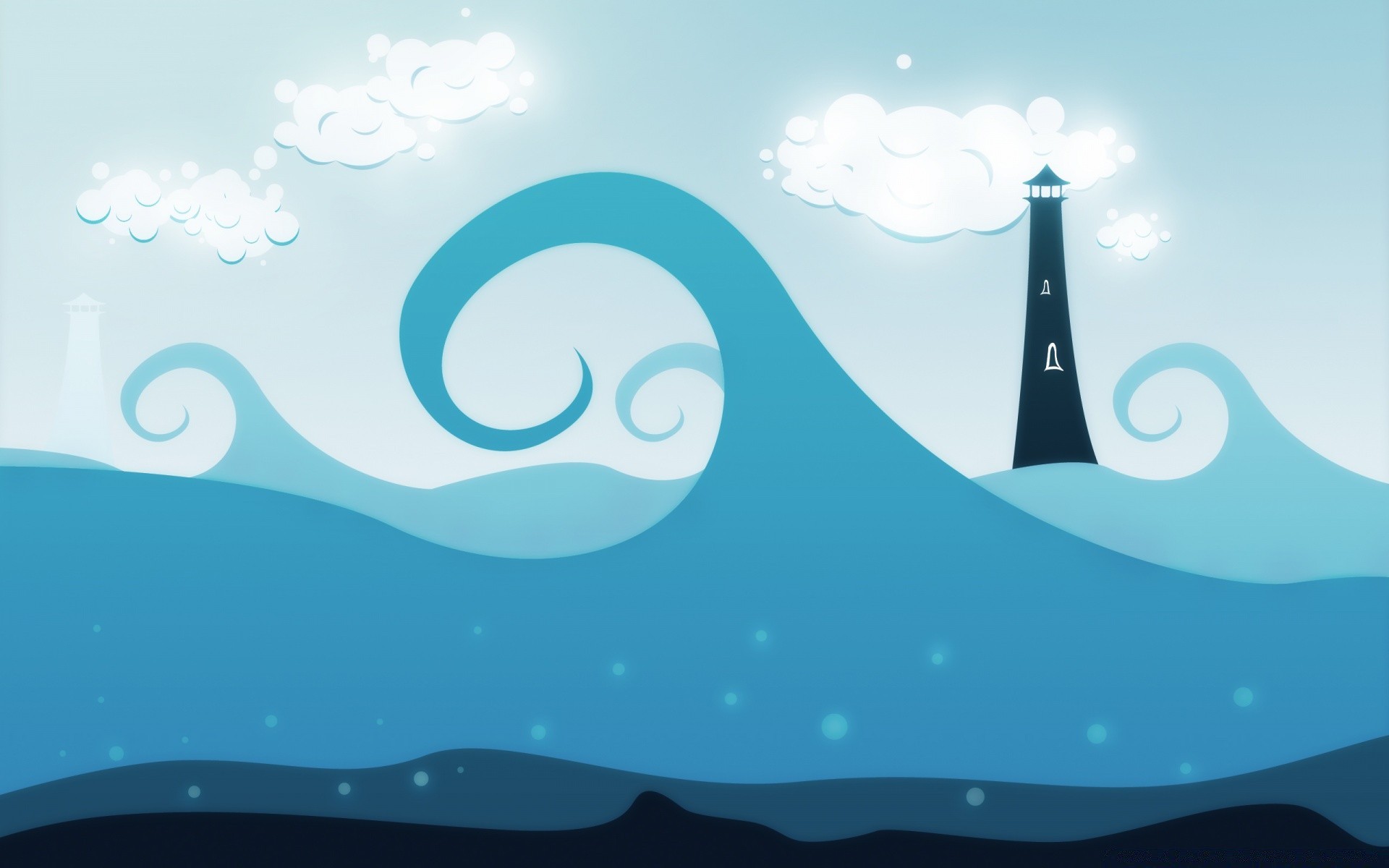 Drawing of a lighthouse with a raging ocean