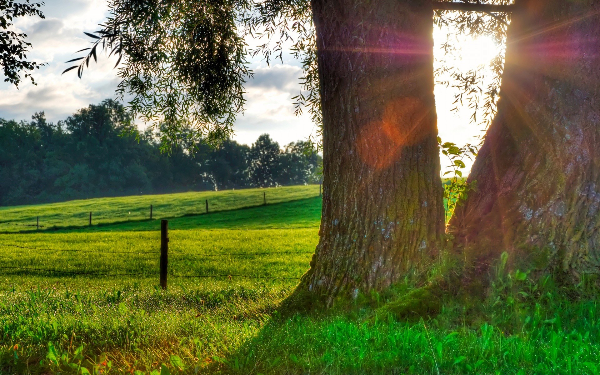 Two trees in nature and the sun