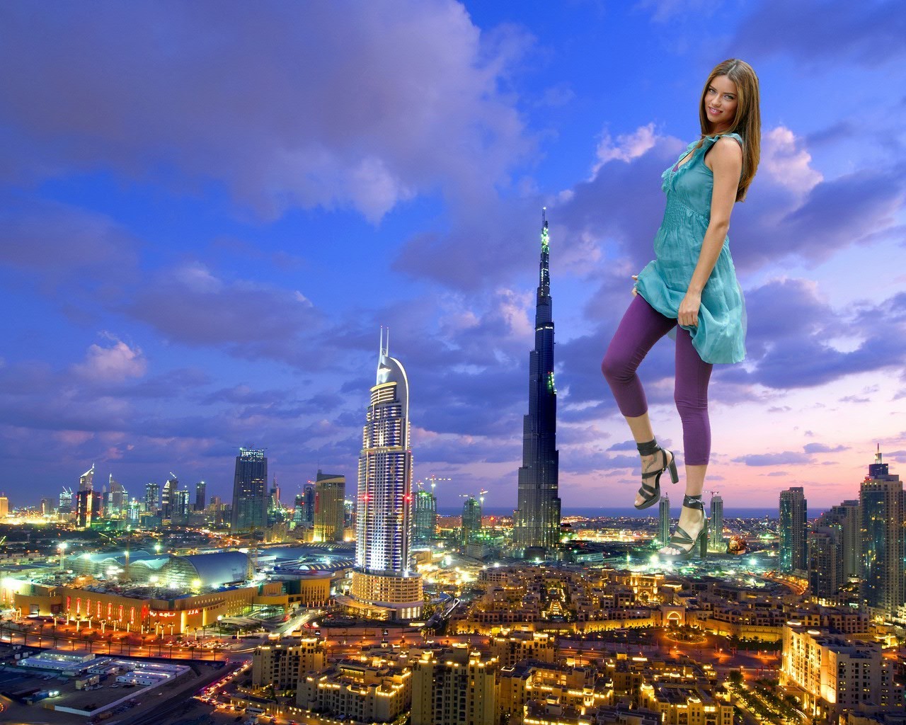 Lights of the night city and high skyscrapers