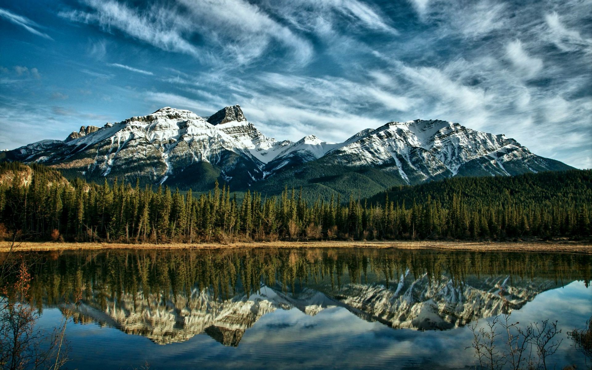 Reflection of mountains in a crystal clear lake