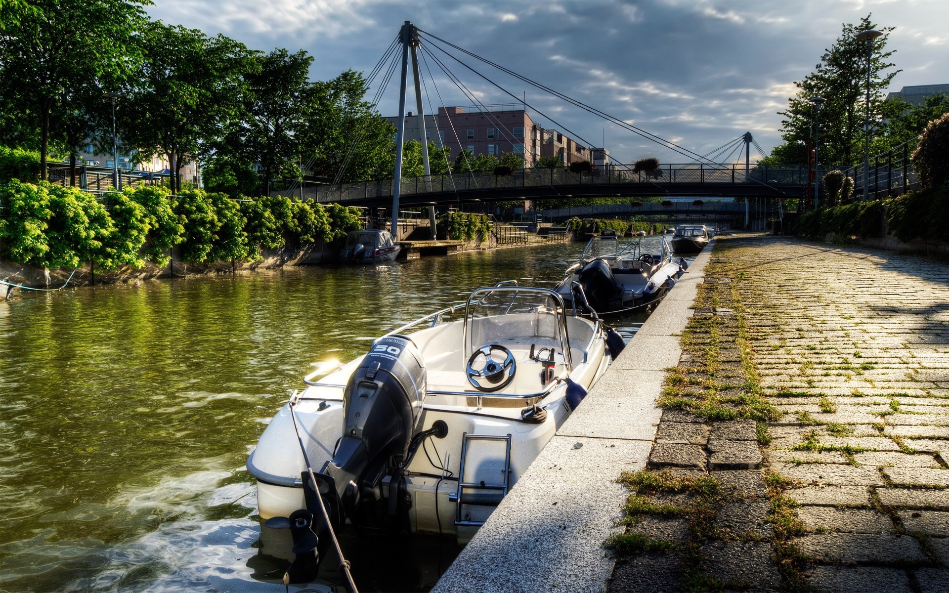 Motor boat on the canal bank