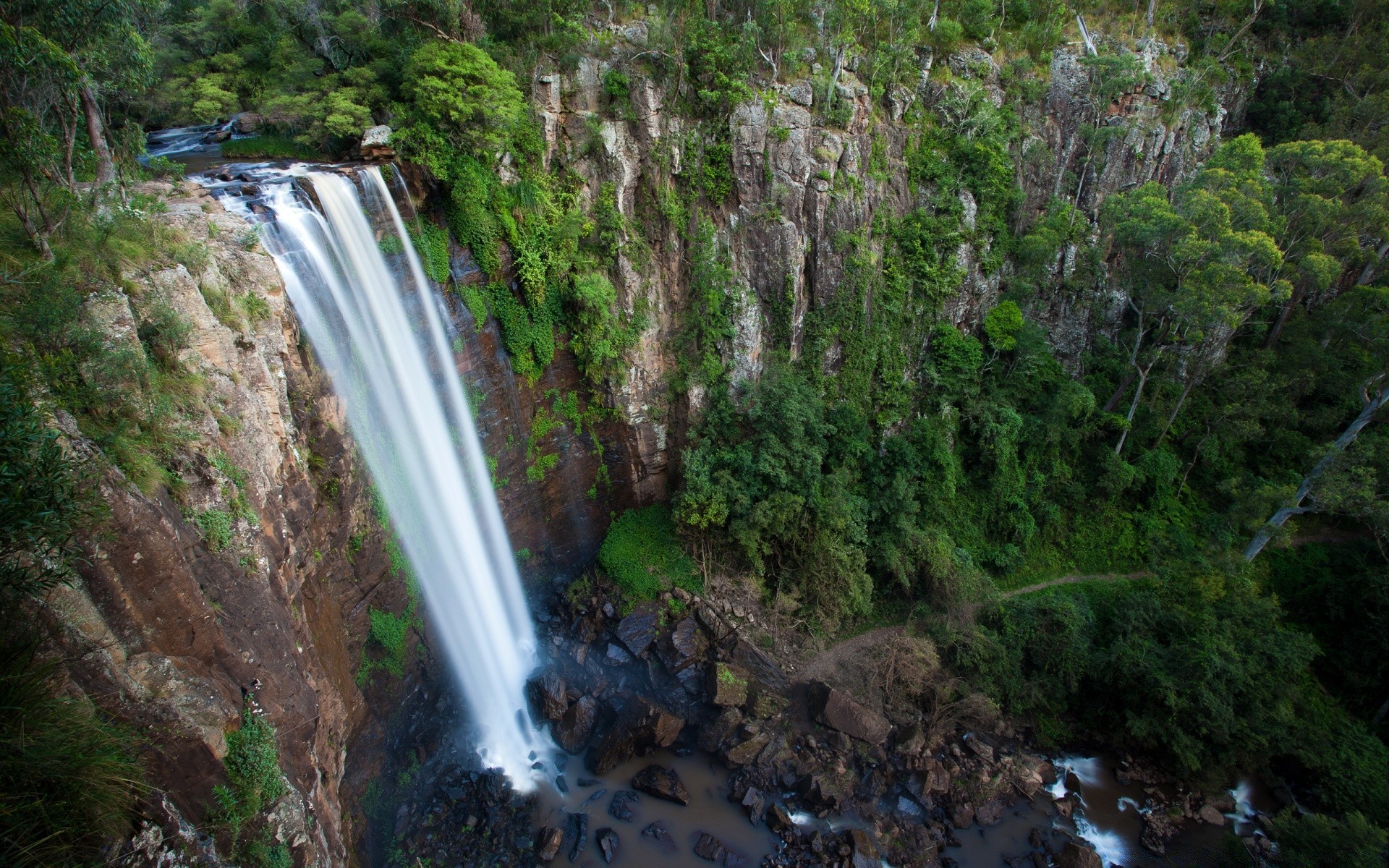 The peaceful streams of the waterfall in a misty hazeThe peaceful streams of the waterfall in a misty haze