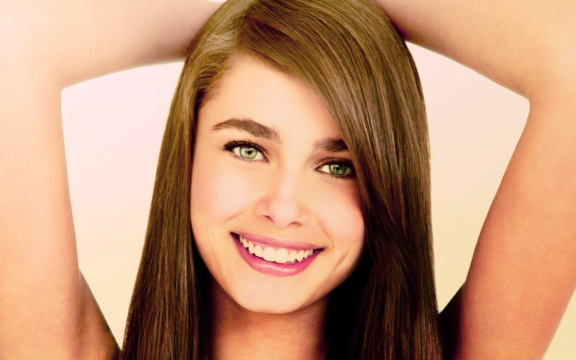 Snow-white smile of a green-eyed girl