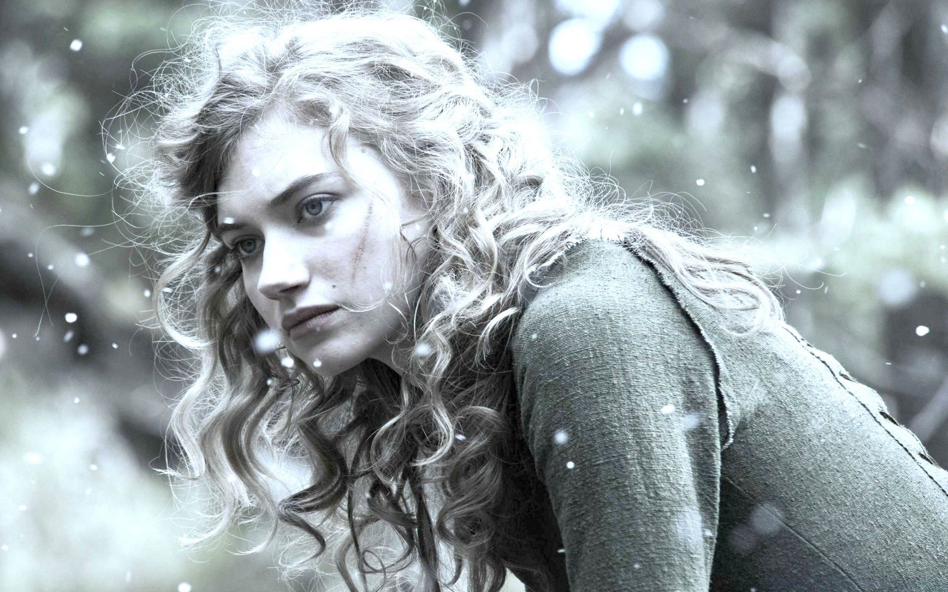 RED-HAIRED GIRL LOOK FROM BEHIND THE CURTAIN