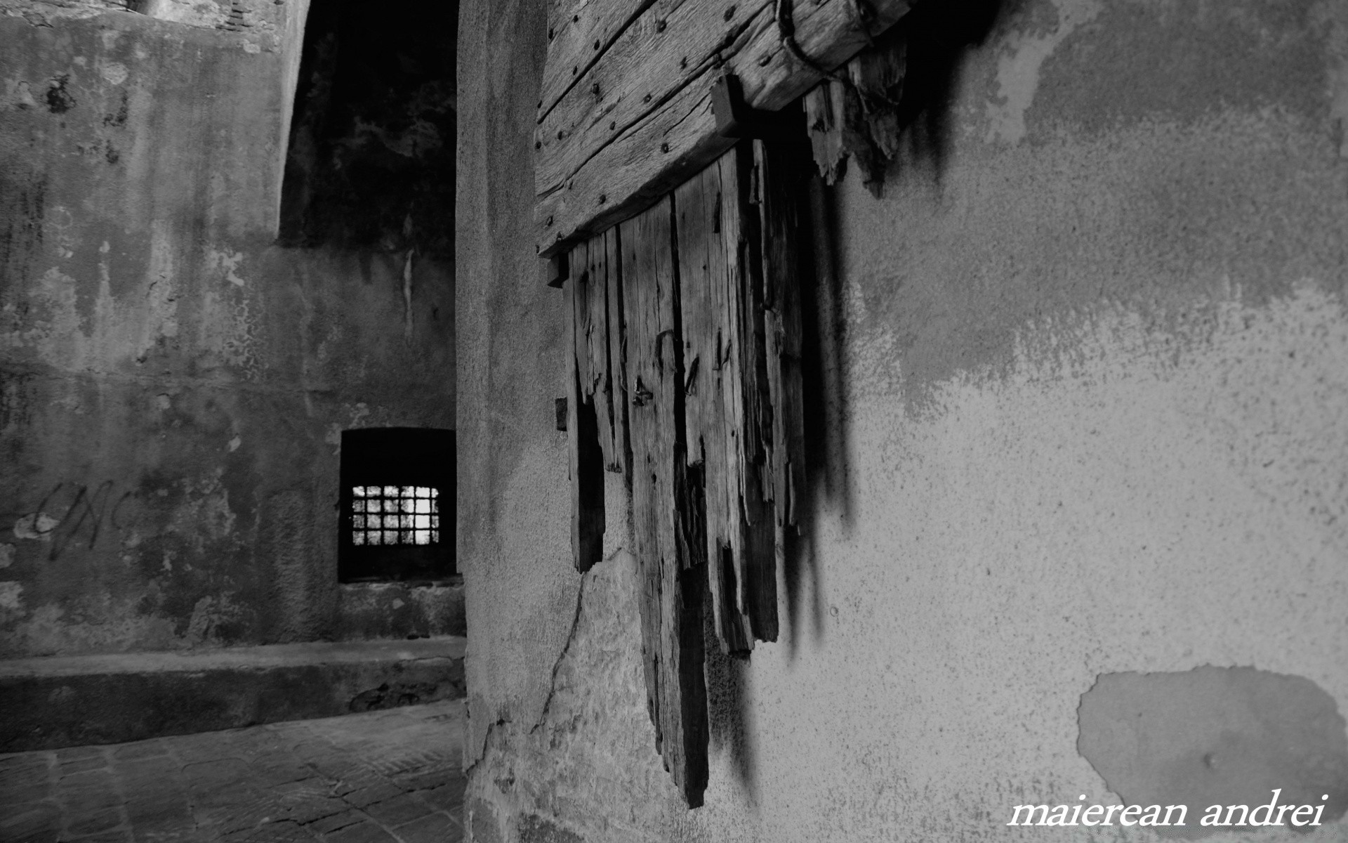 The house is in black and white with wooden boards
