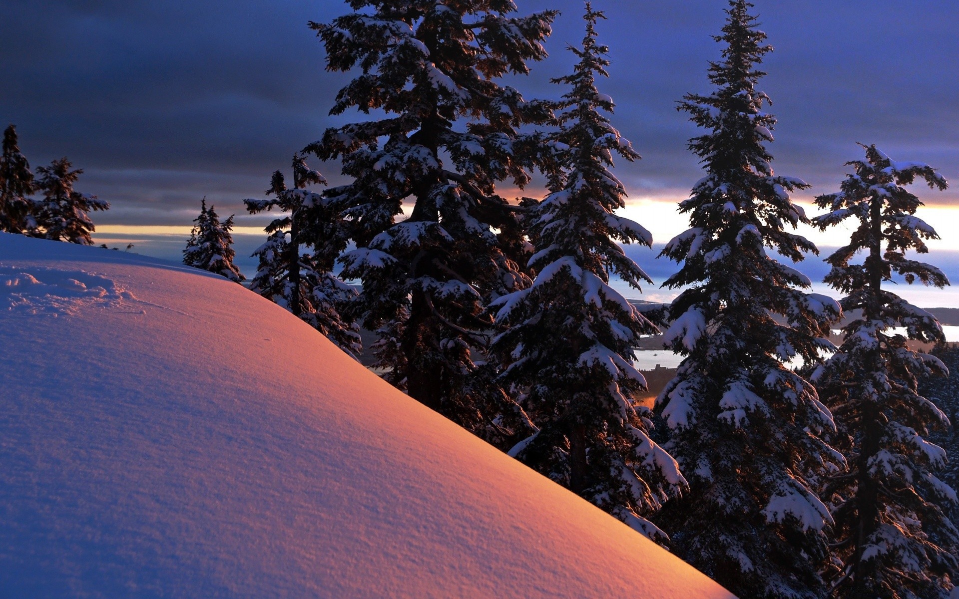Winter landscape of mountains against the background of treesWinter landscape of mountains against the background of trees