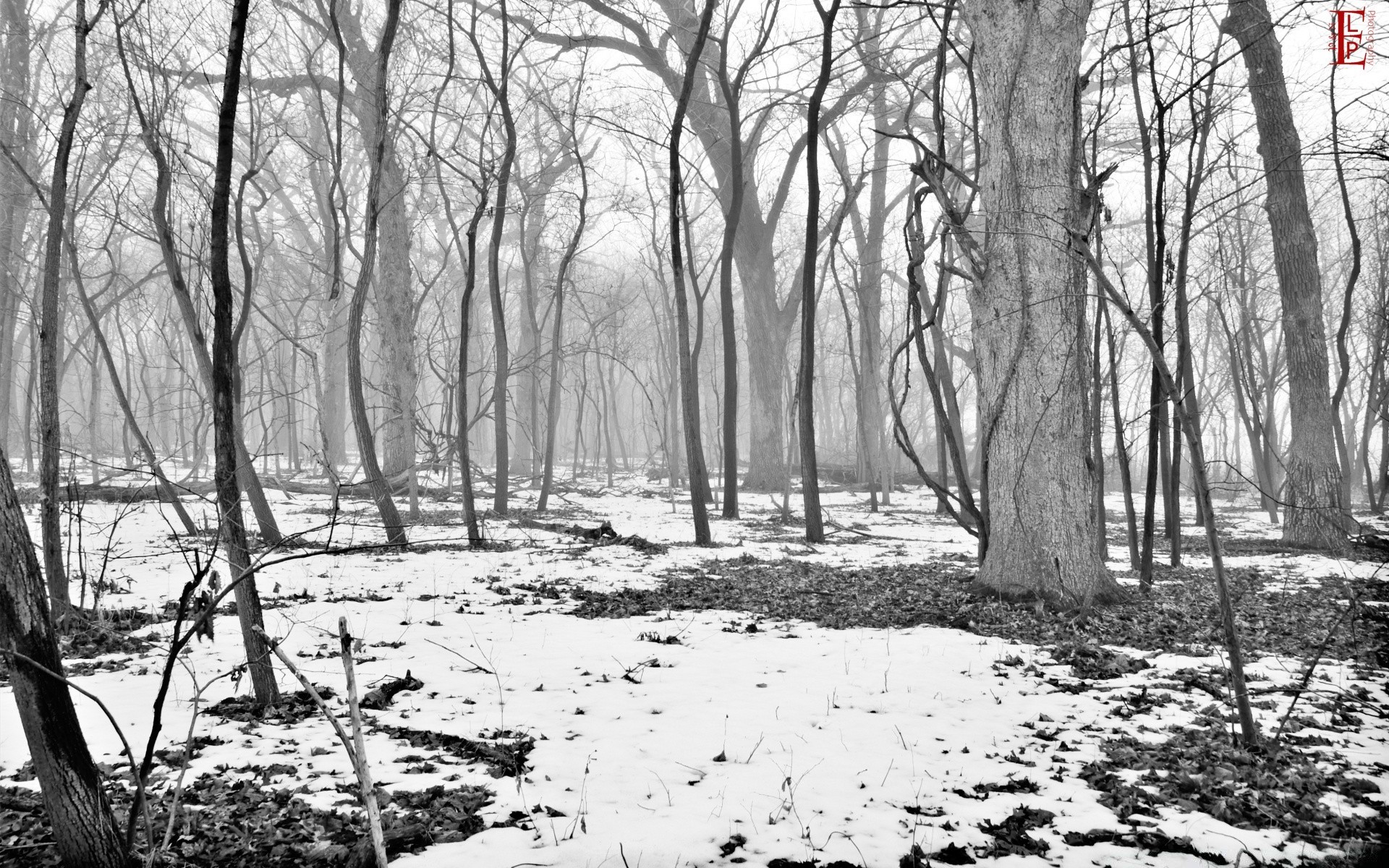 Winter forest in monochrome gray