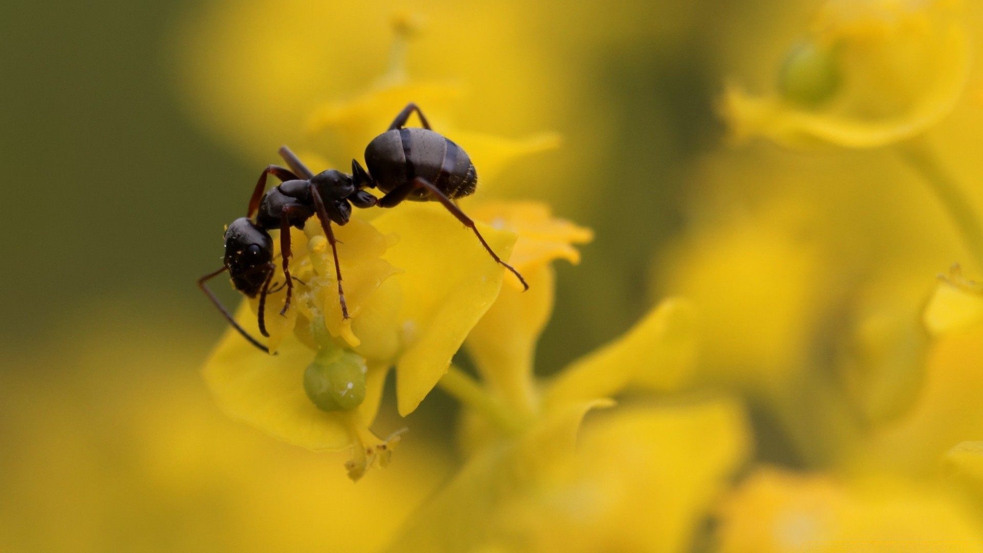 An ant on a yellow flower