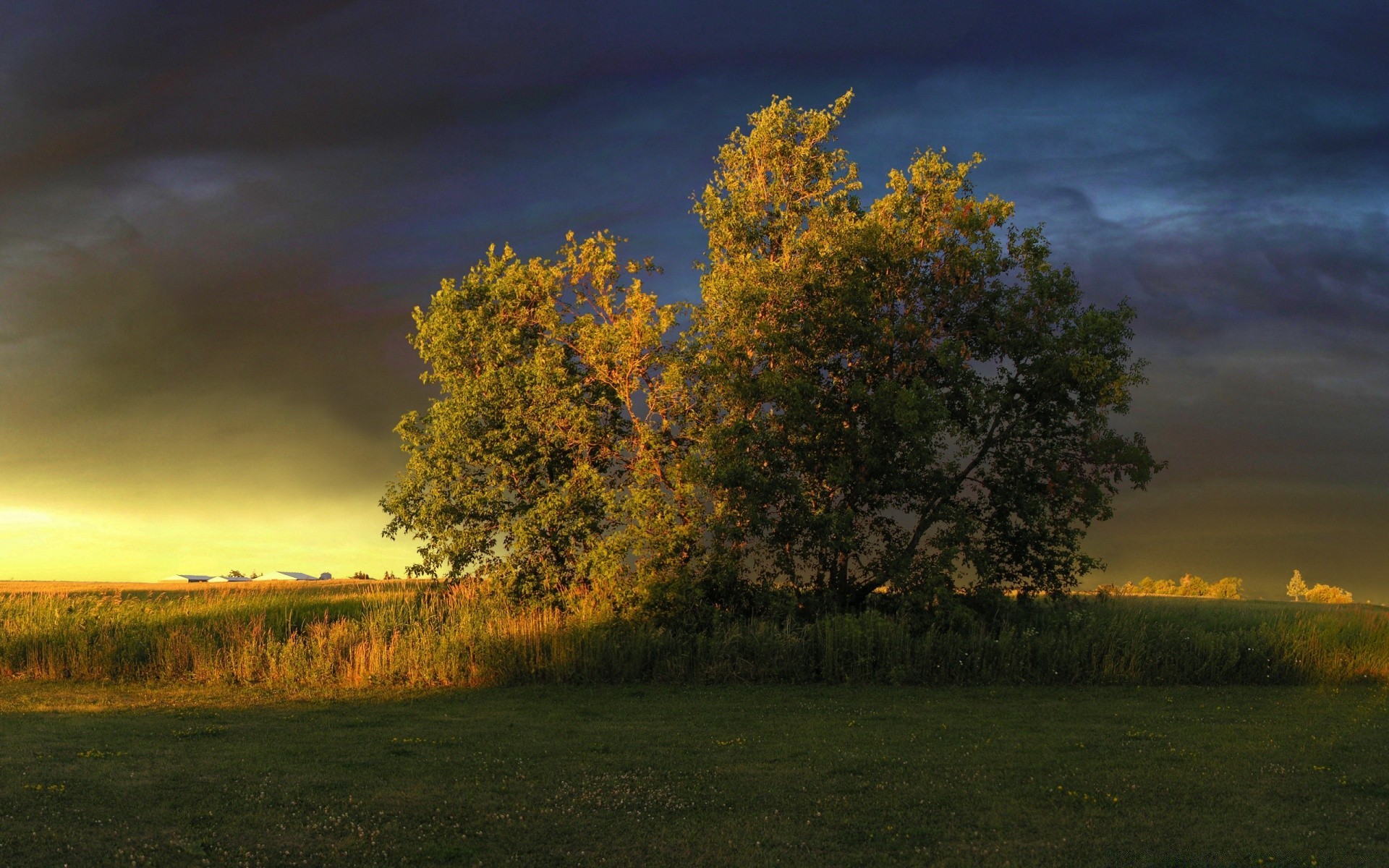 A yellowing tree in an autumn landscape