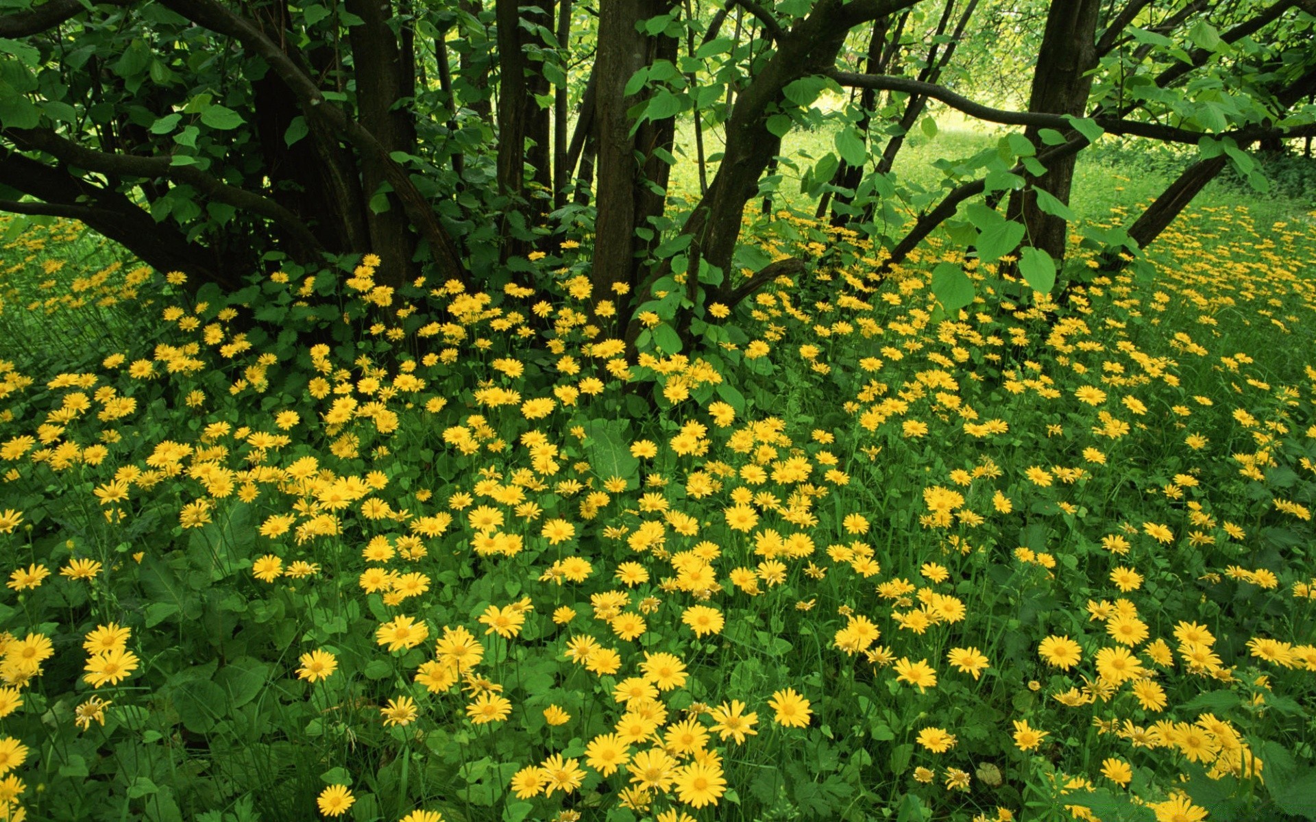 Agriculture on the background of a green meadow. yellow flower. cAgriculture on the background of a green meadow. Yellow flower. C