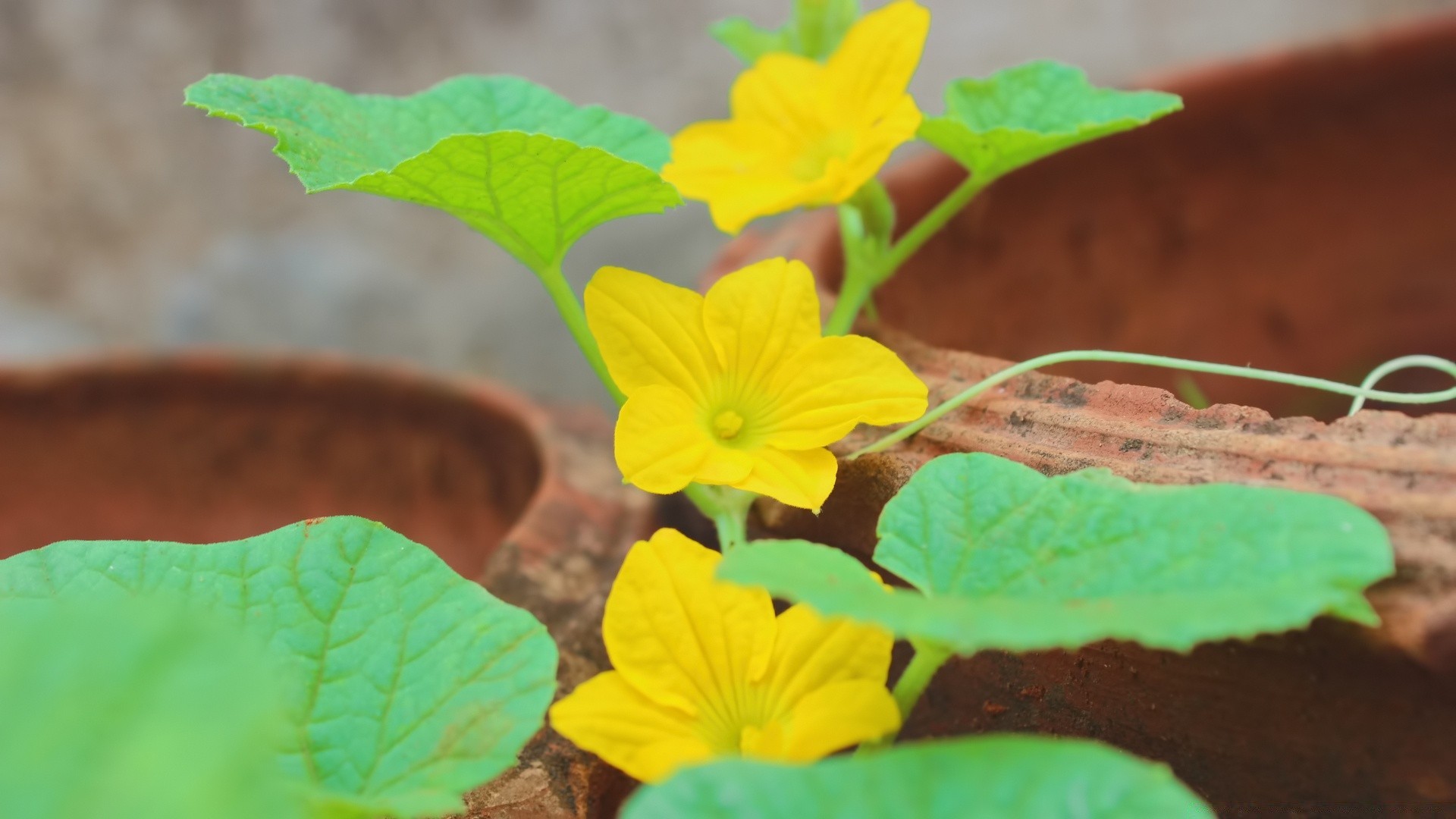 Yellow flower on the right on a blurry background