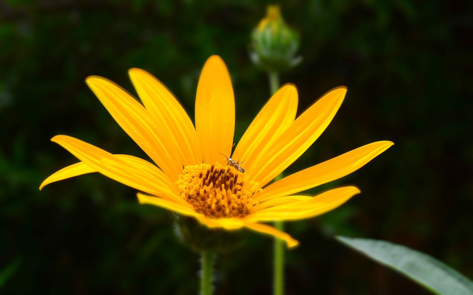 A hot yellow flower on a black background