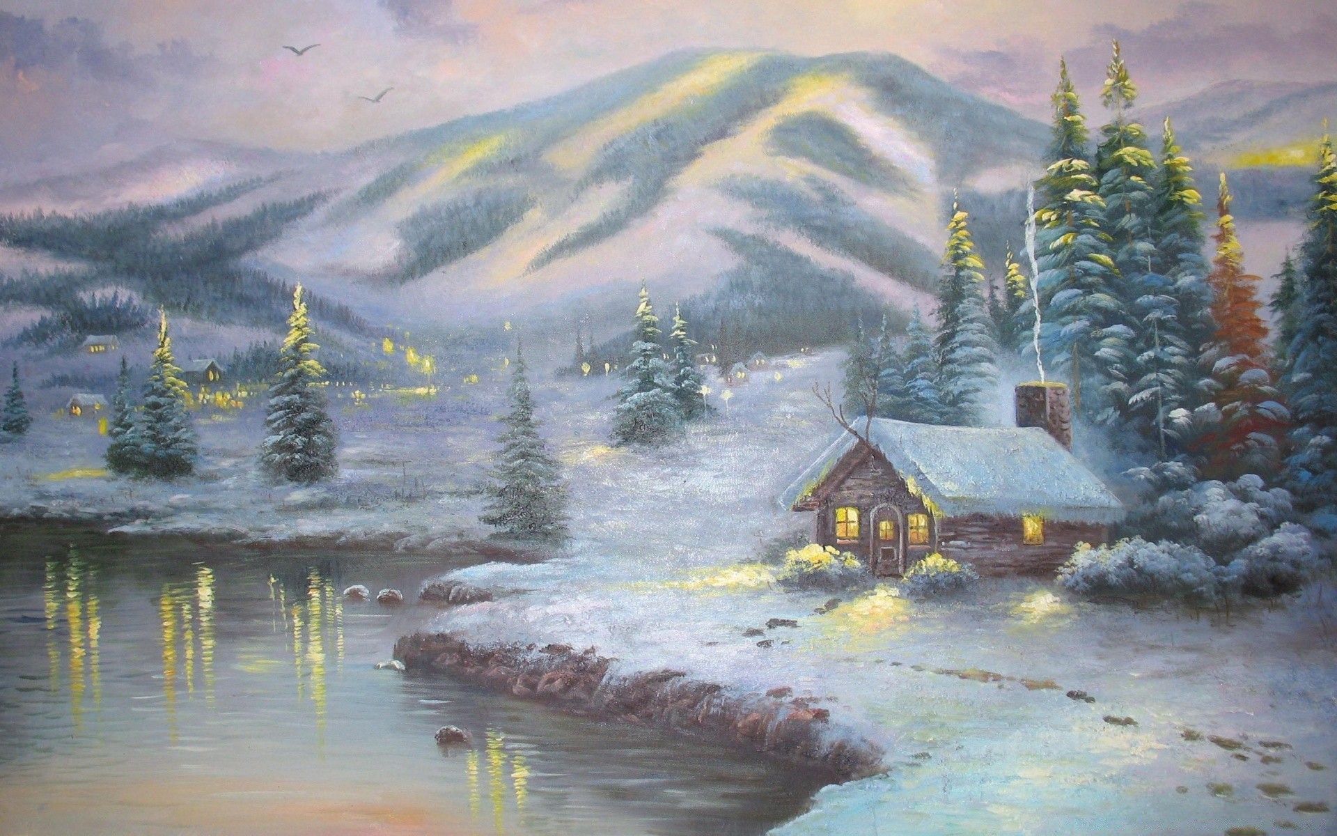 Around the lake there is a spruce forest and mountainsAround the lake there is a spruce forest and mountains