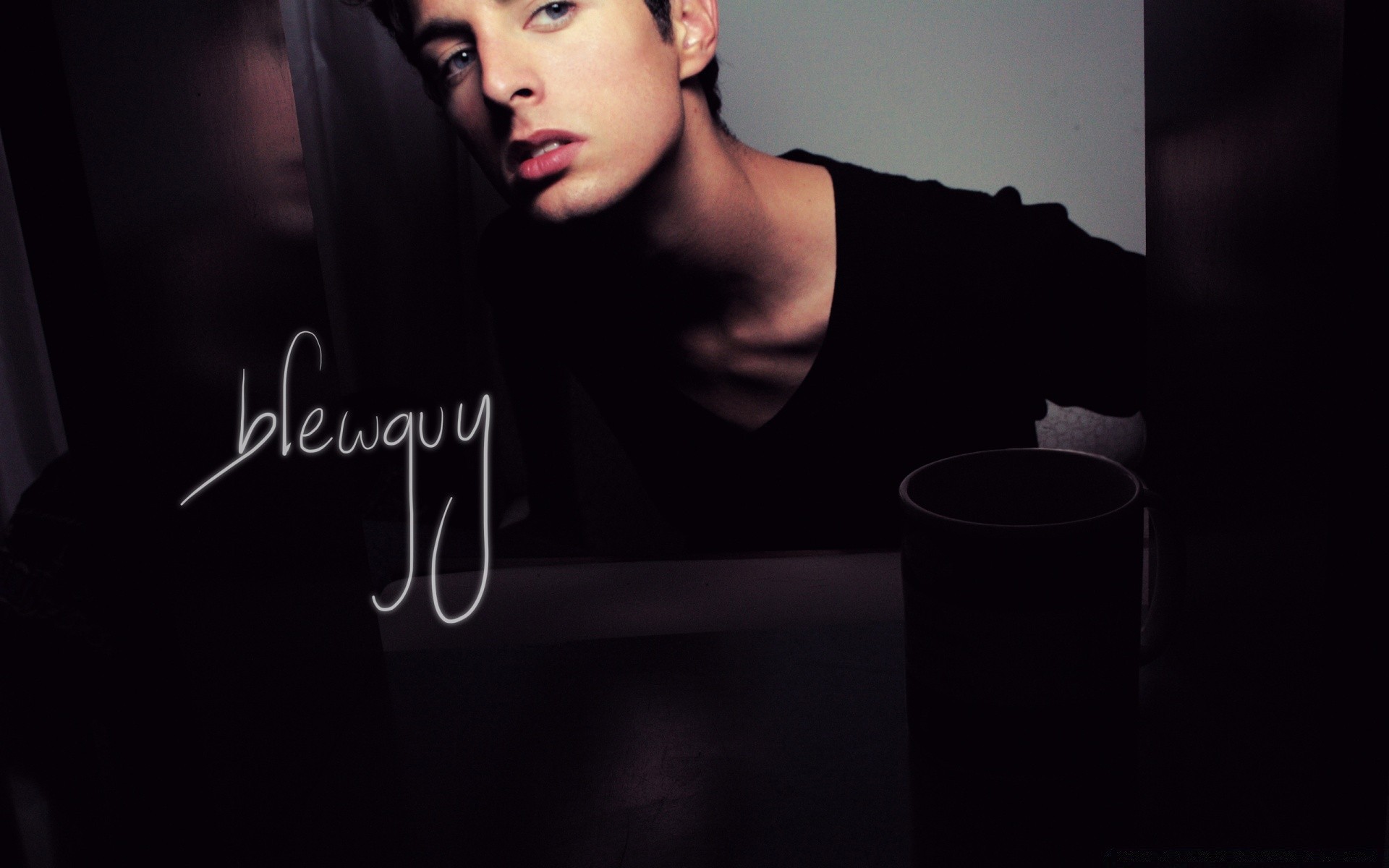 A young man and an inscription on the background