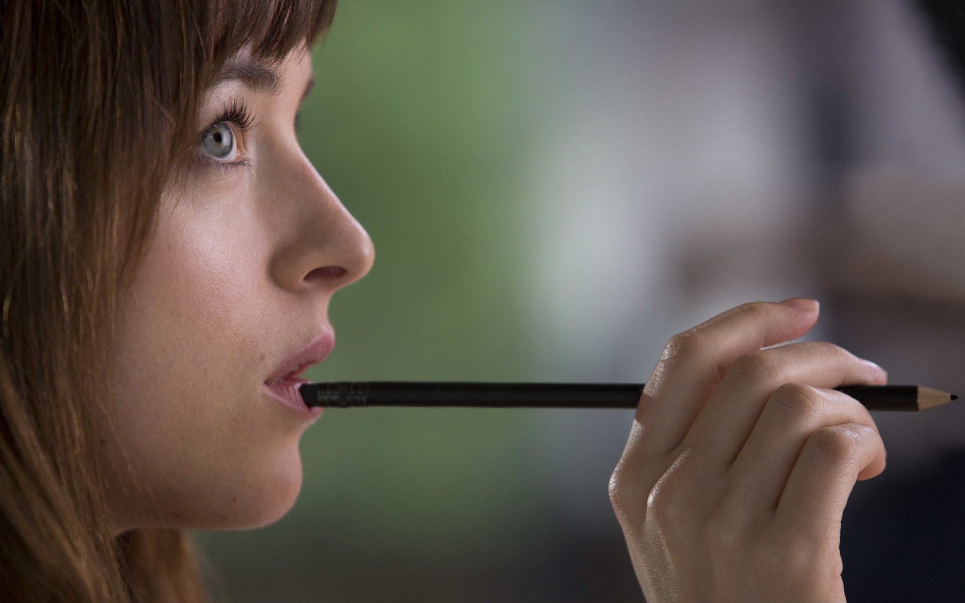 A thoughtful girl with a pencil in her hands