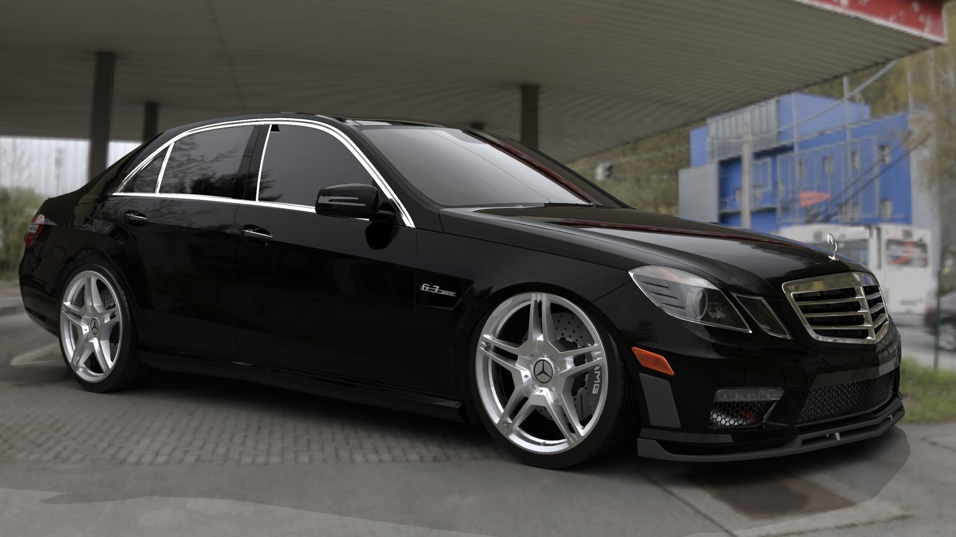 3d graphics, a car standing under a canopy in the yard of the house