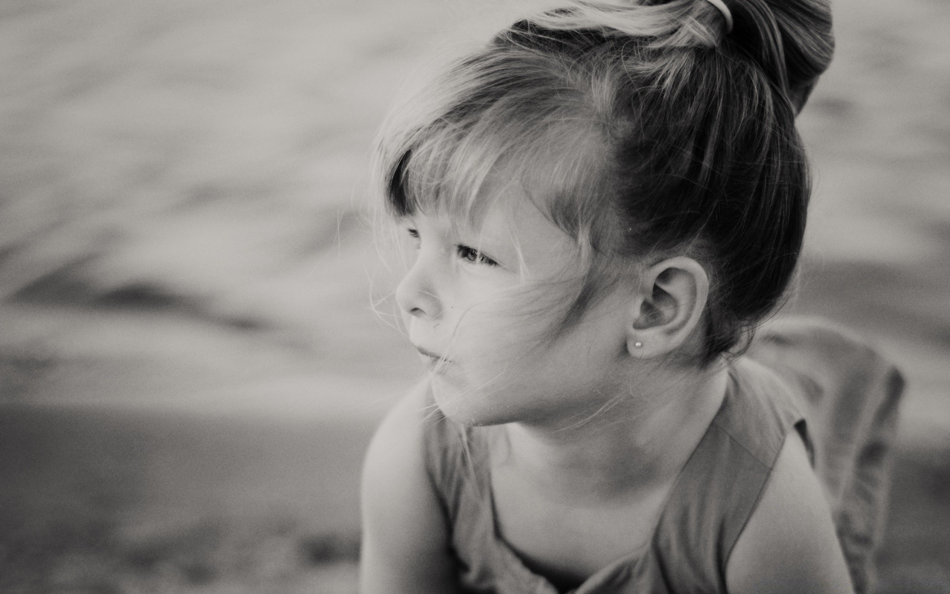 A girl in a polka dot dress sitting on the grass under a huge bright umbrella