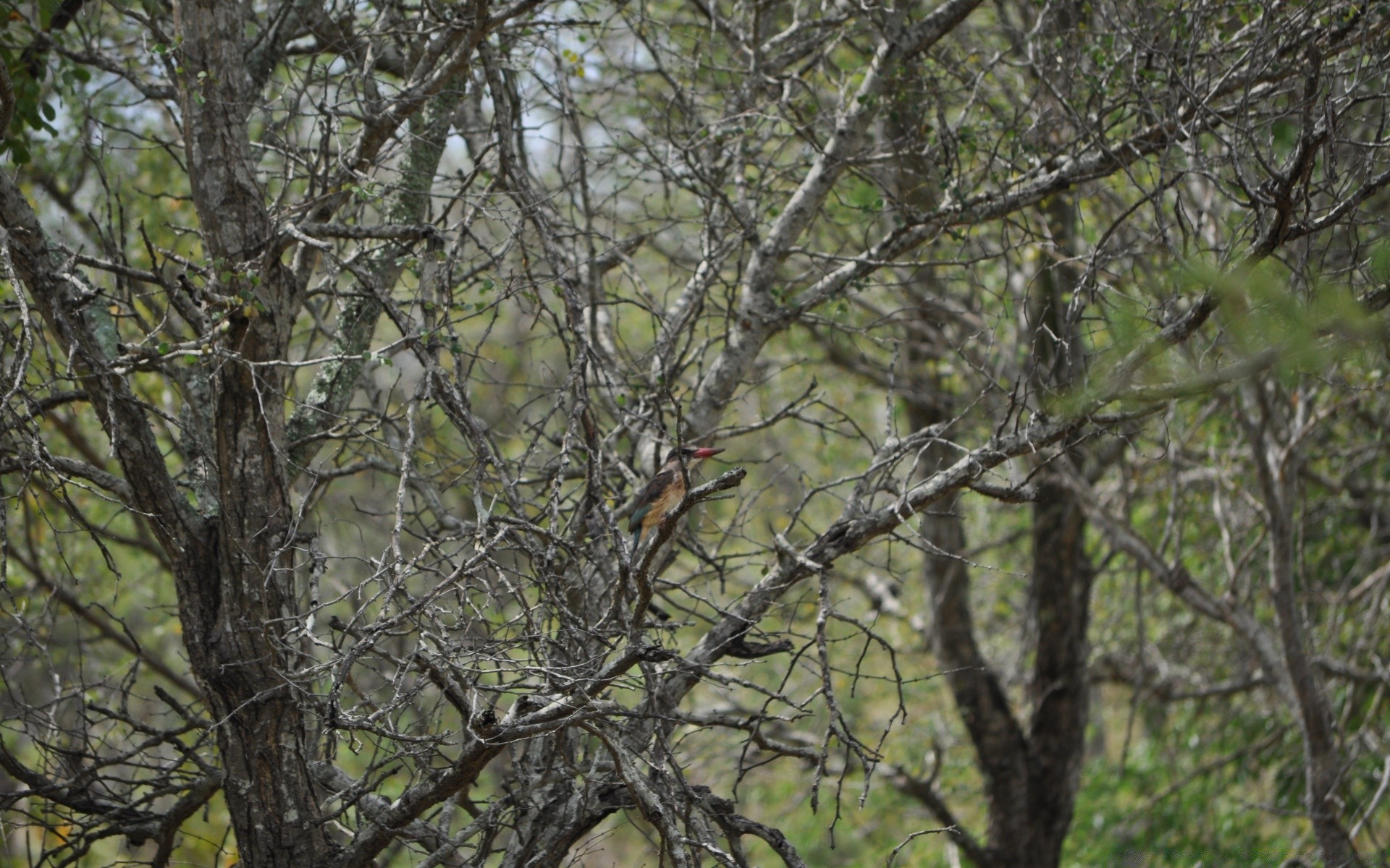 Frosty day. A bird with a yellow tie is sitting on a branch