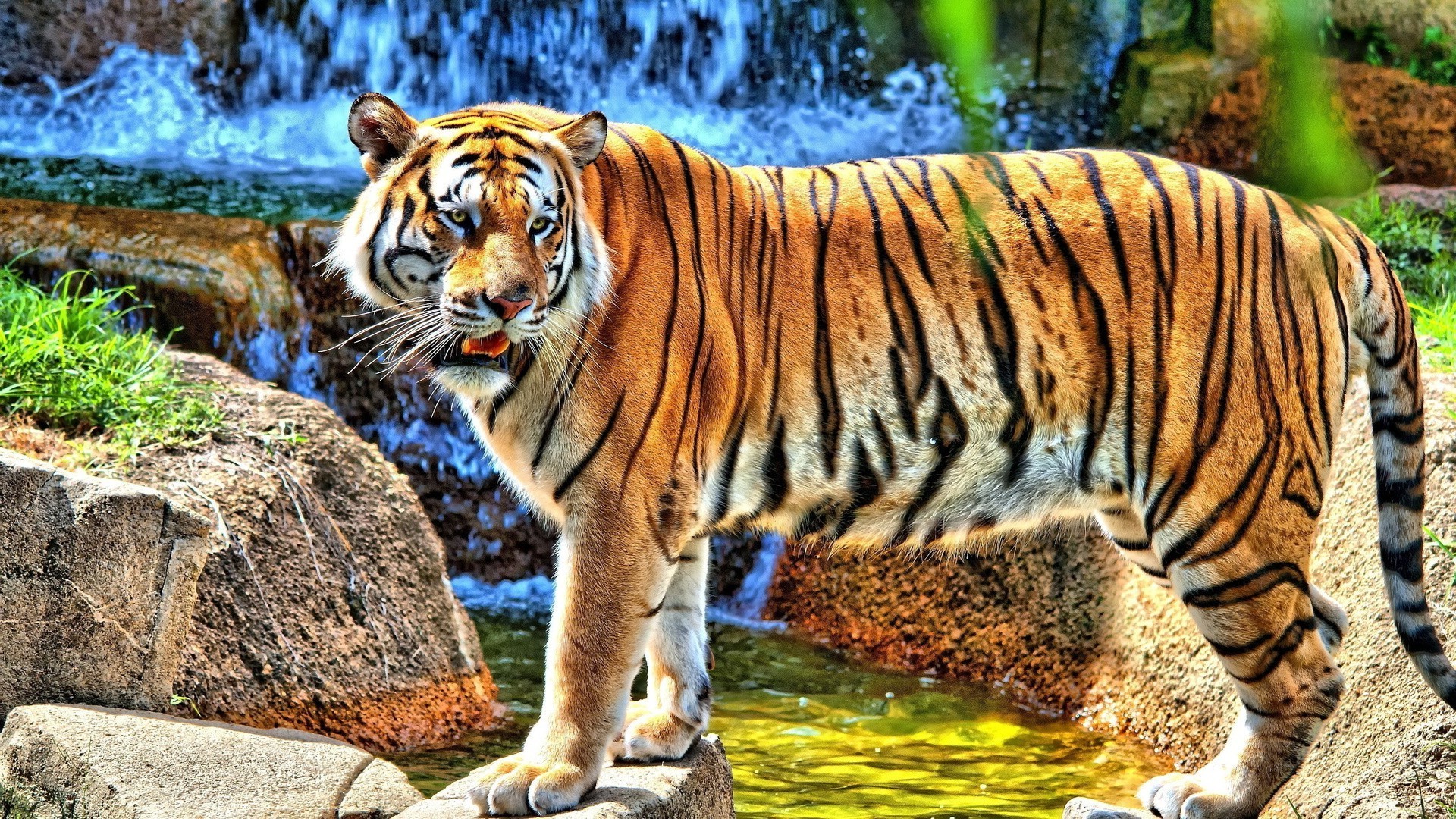 Big tiger drinks water