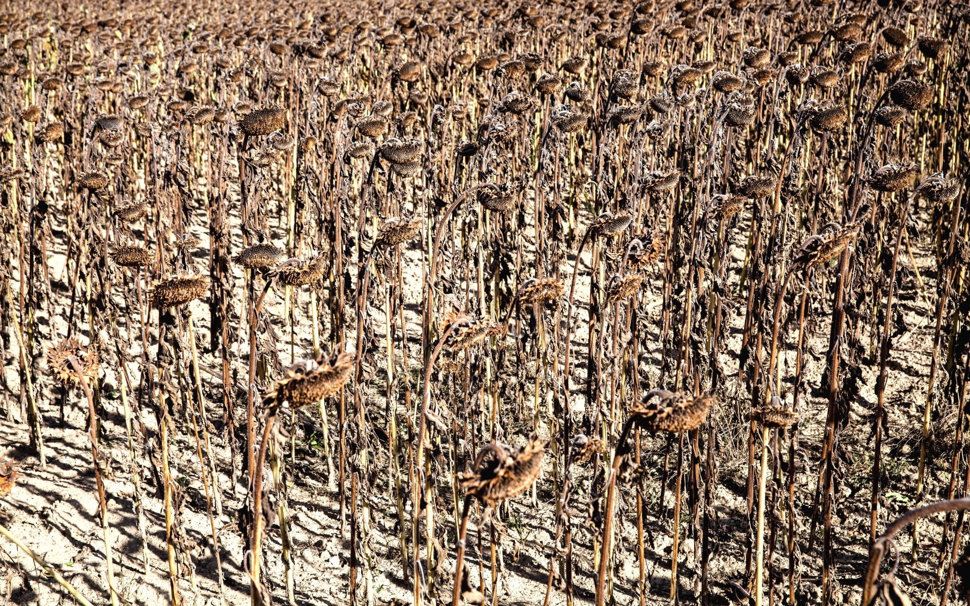 Vintage photo of ripe sunflowers ready for harvesting