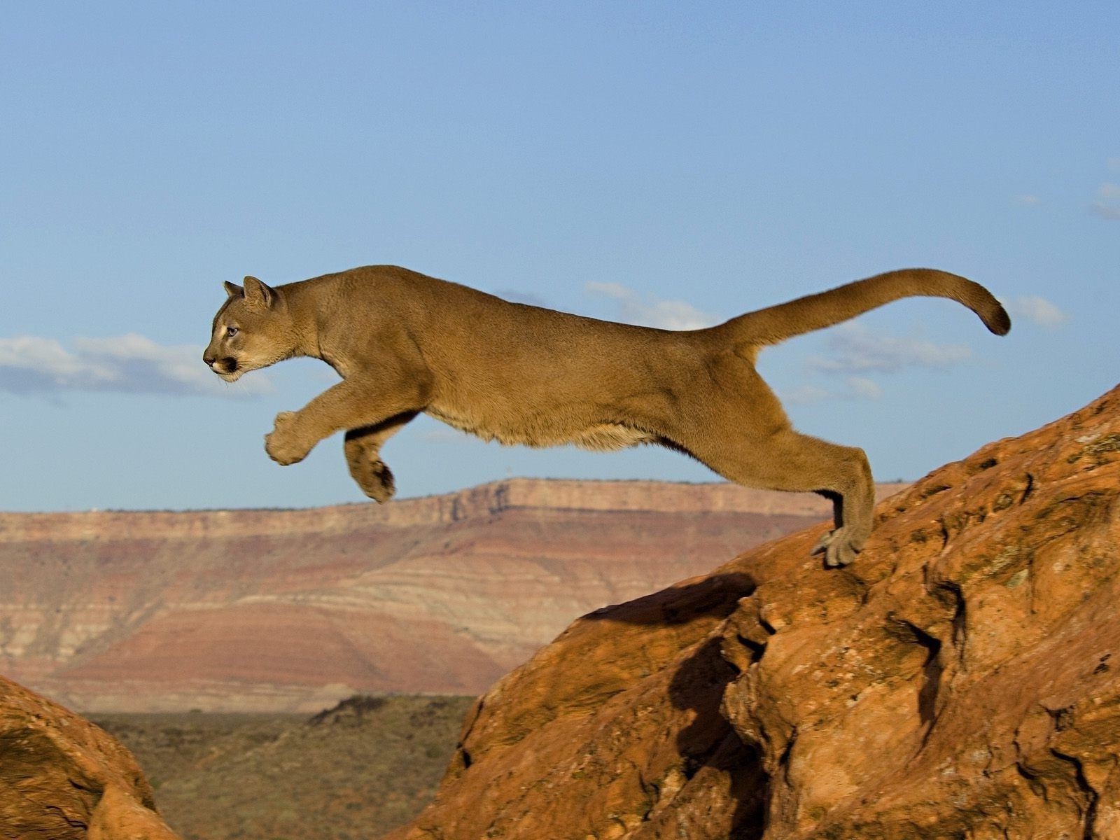 The moment a lioness jumps off a cliff