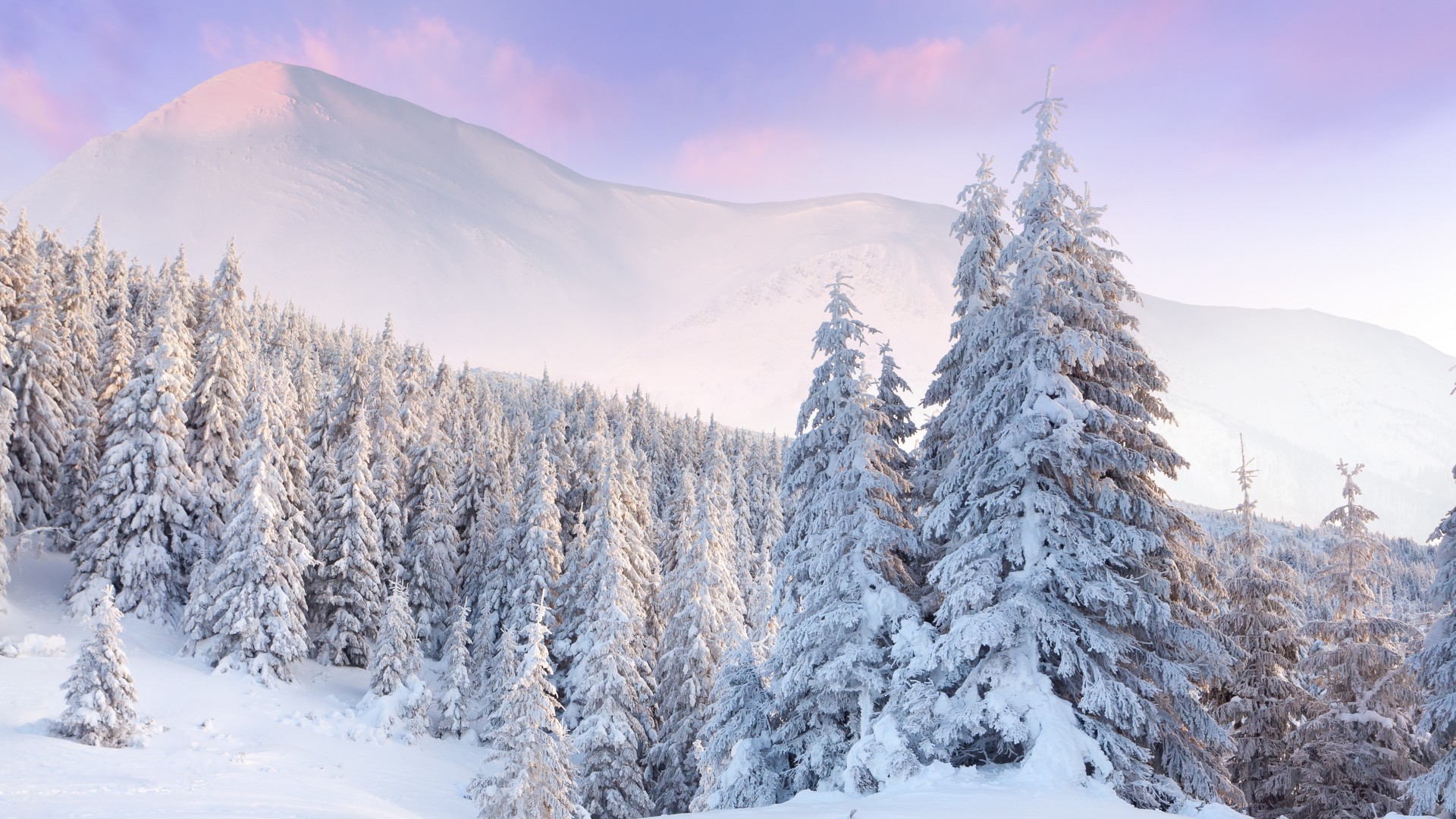 Frosted christmas trees are covered with snow on the mountainsideFrosted Christmas trees are covered with snow on the mountainside