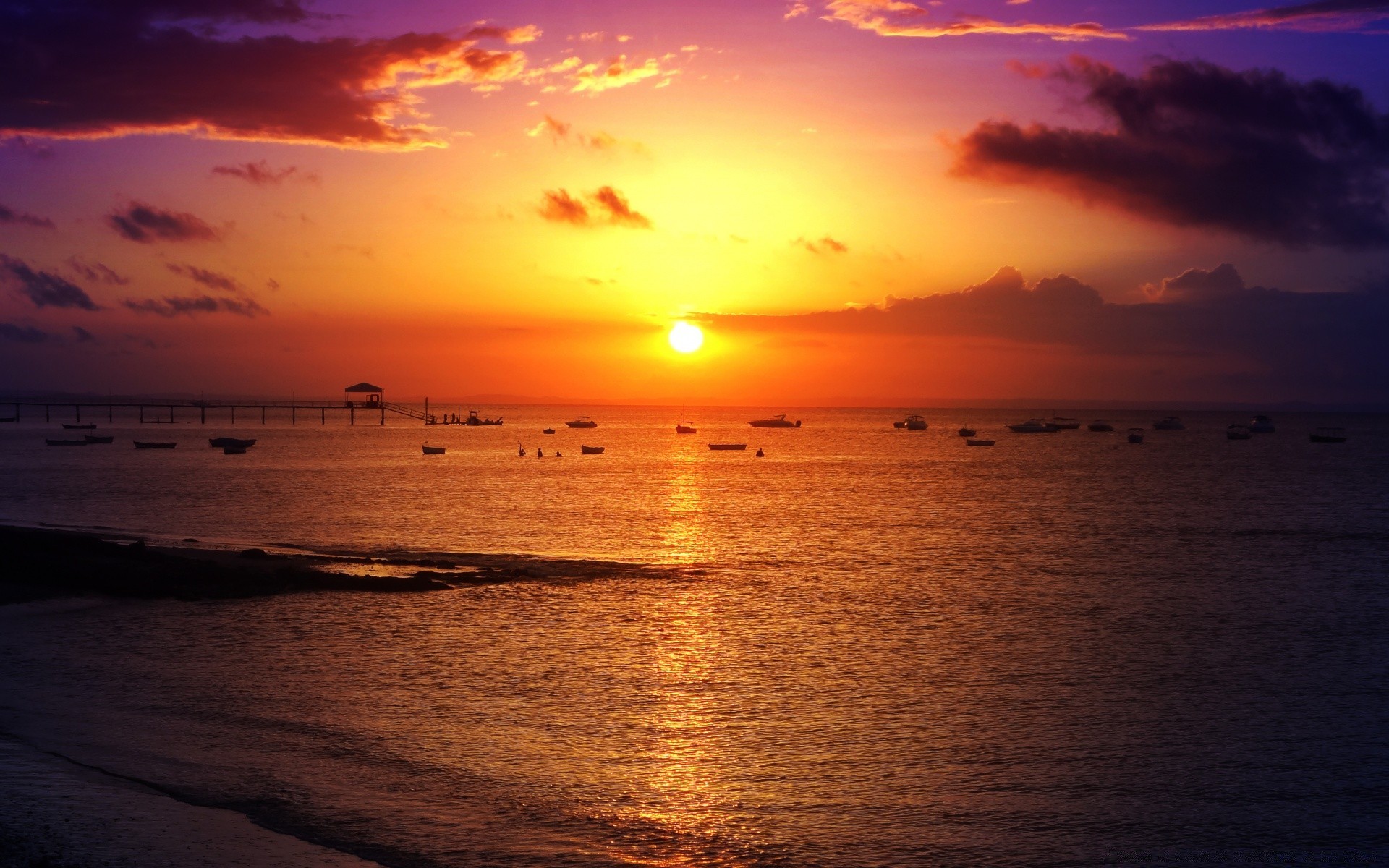 A bridge in america, cutting through the waters against the background of sunsetA bridge in America, cutting through the waters against the background of sunset