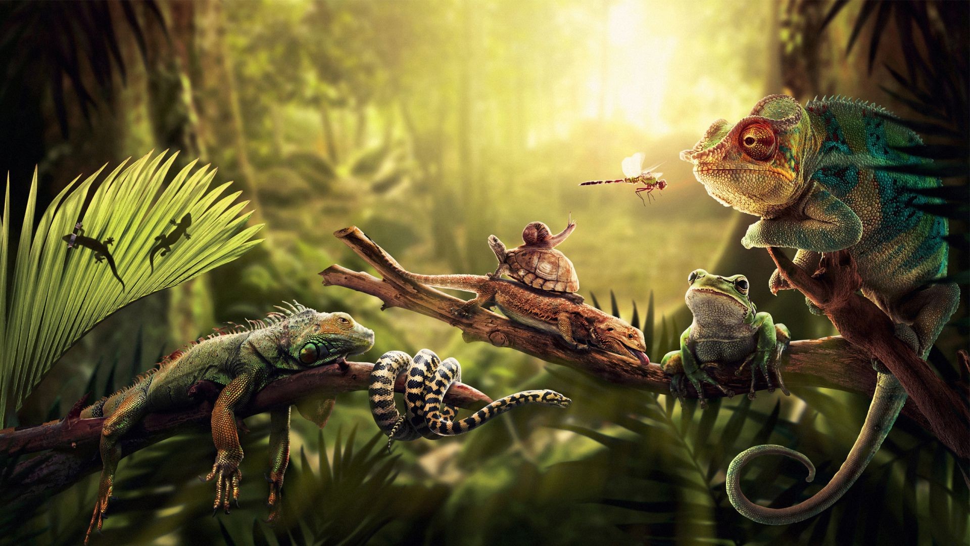 Landscape of wildlife and chameleons