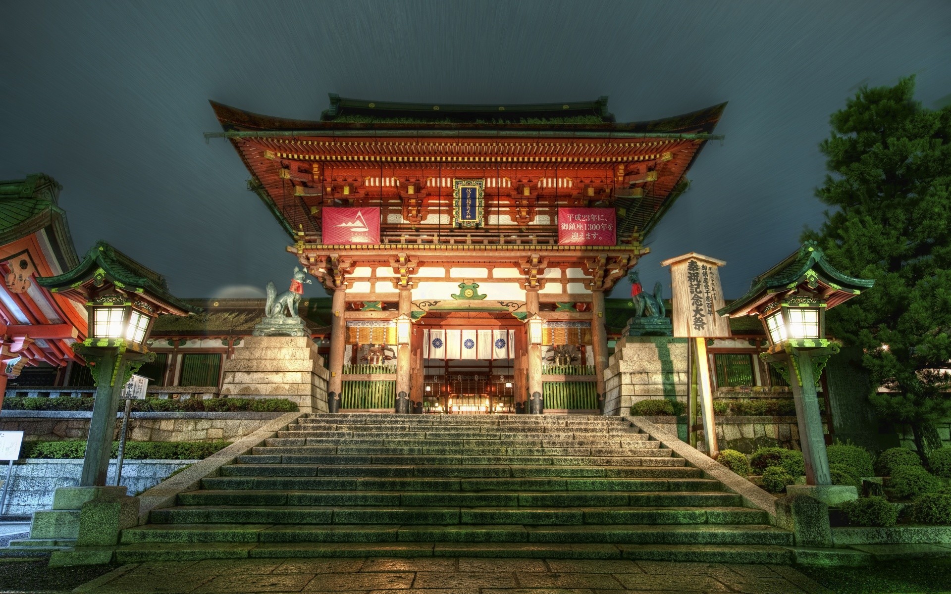 Asian temple at night. Oriental architecture