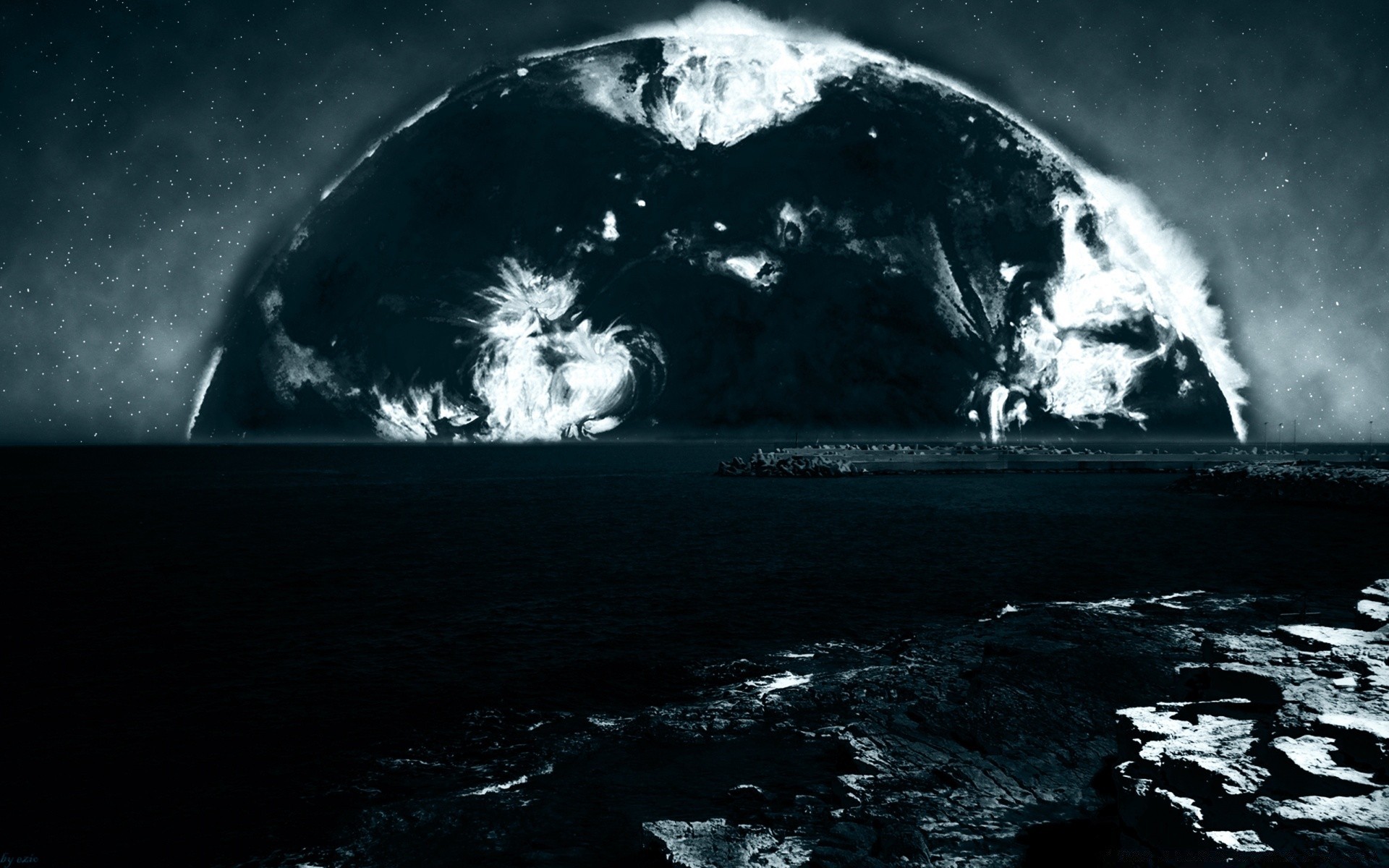 Black water on the background of the moon