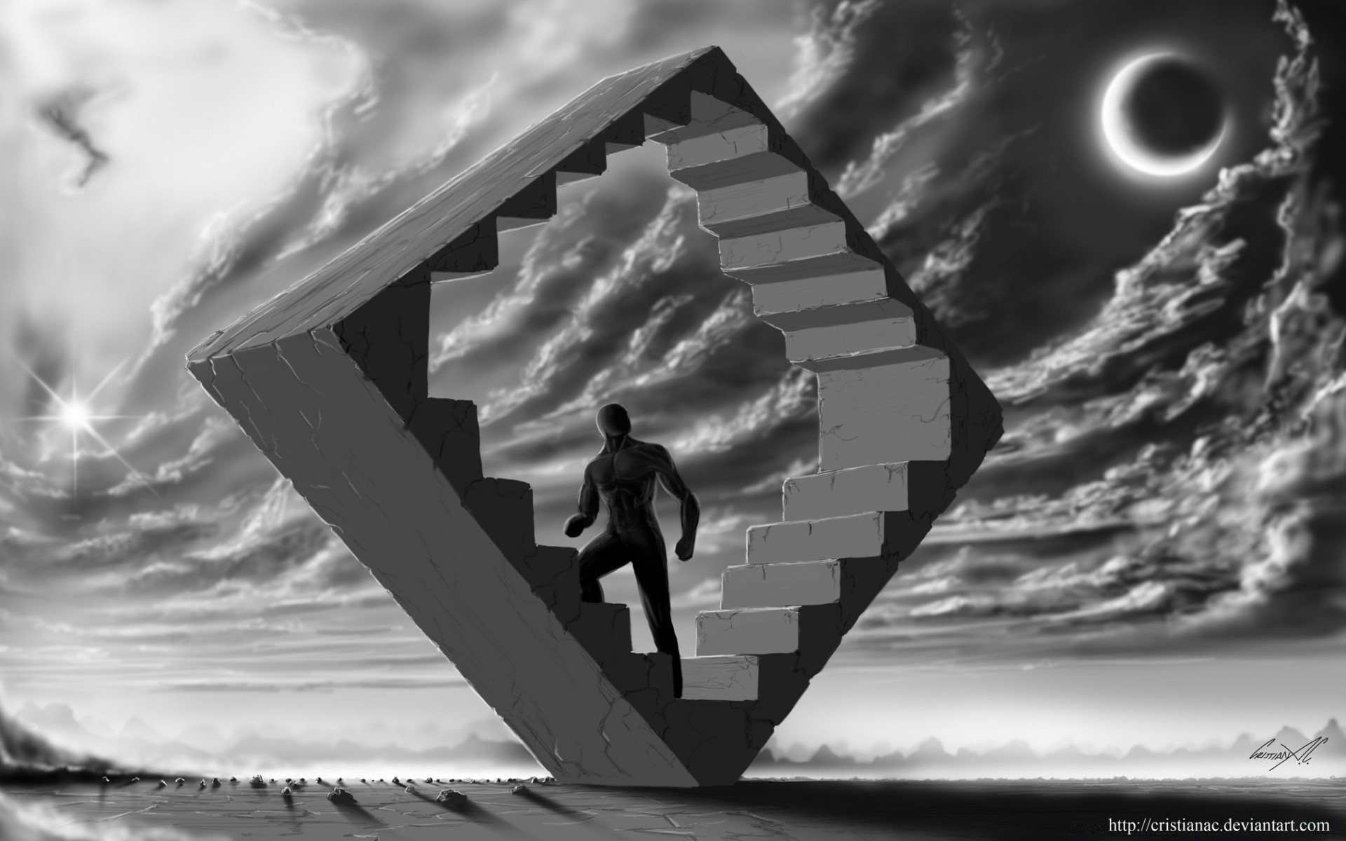 Male silhouette in a square staircase