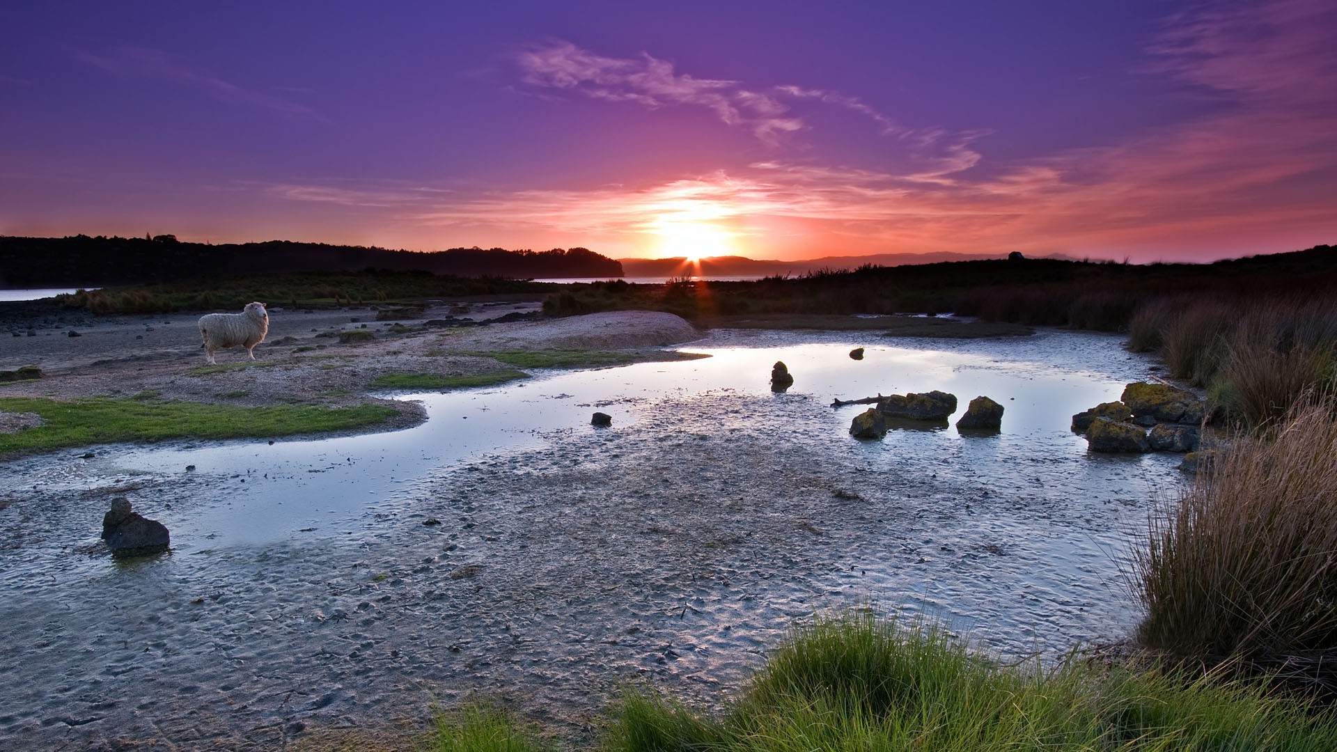 Wildlife. lamb on the background of sunset