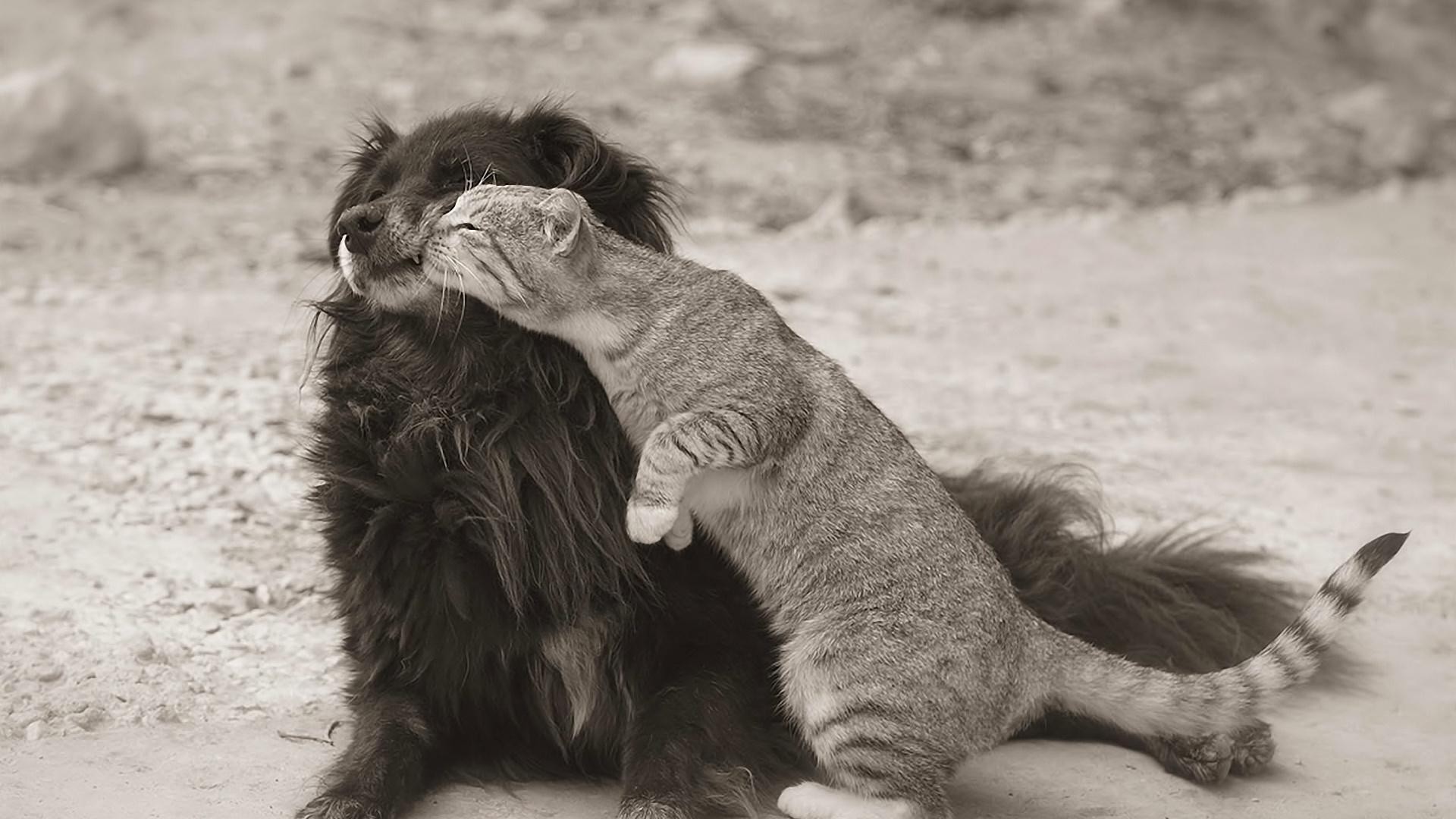 Animal friendship. A cat is a gentle creature