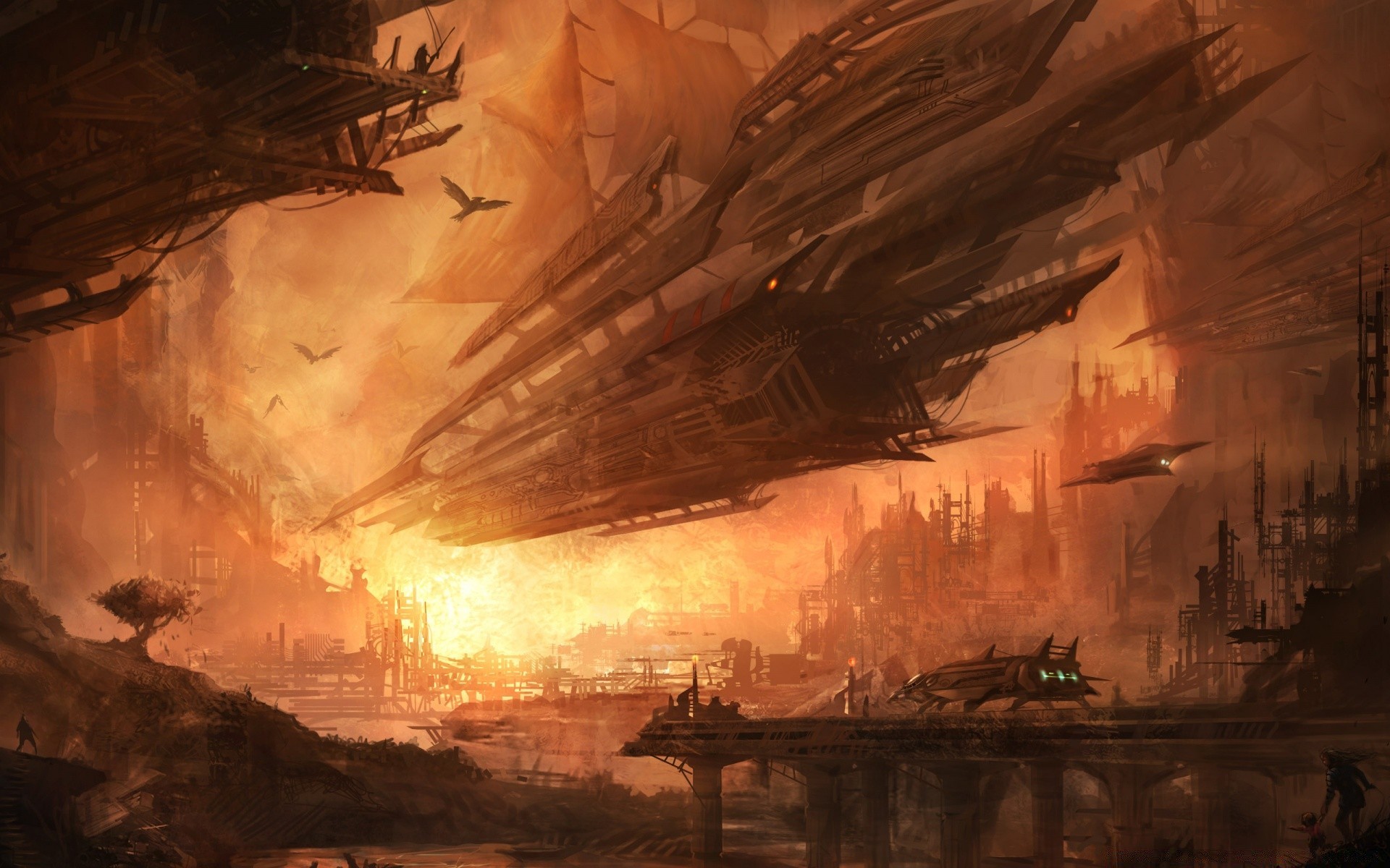 A beautiful fantasy landscape about the war with aliens
