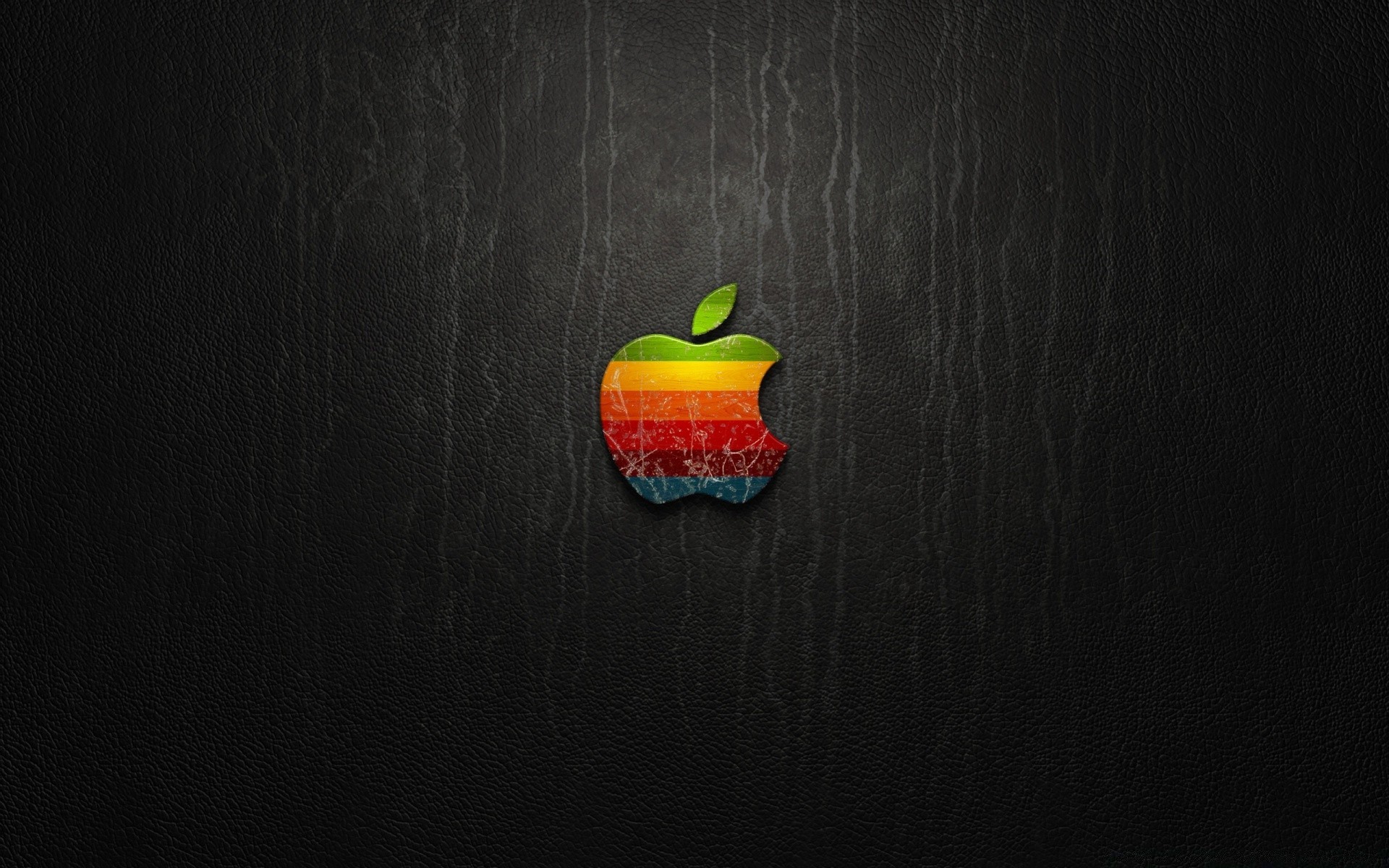 Apple logo with a glowing edge against a dark blue sky and patterns