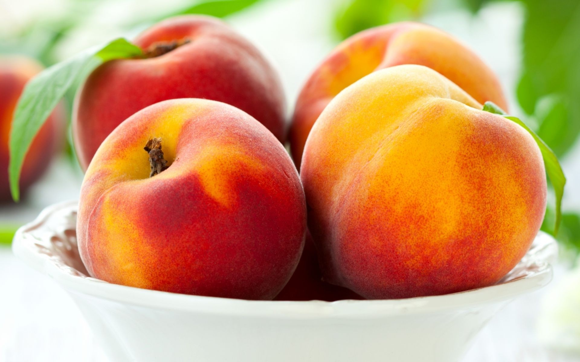 Juicy peaches in a fruit bowl