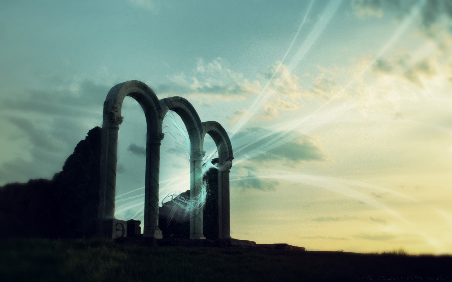 Drawing. fabulous arch on a yellow background