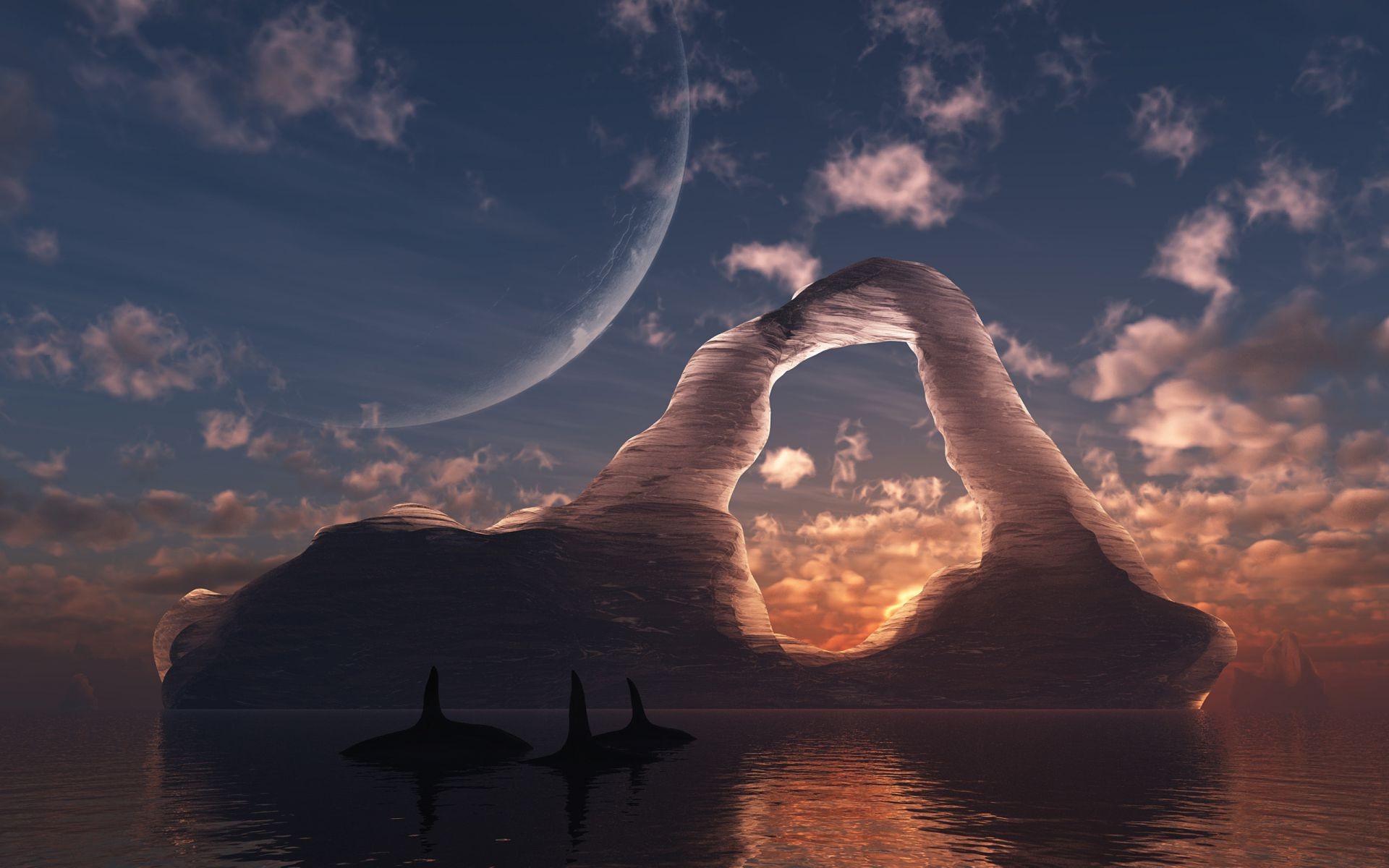 Beautiful rock at sunset art