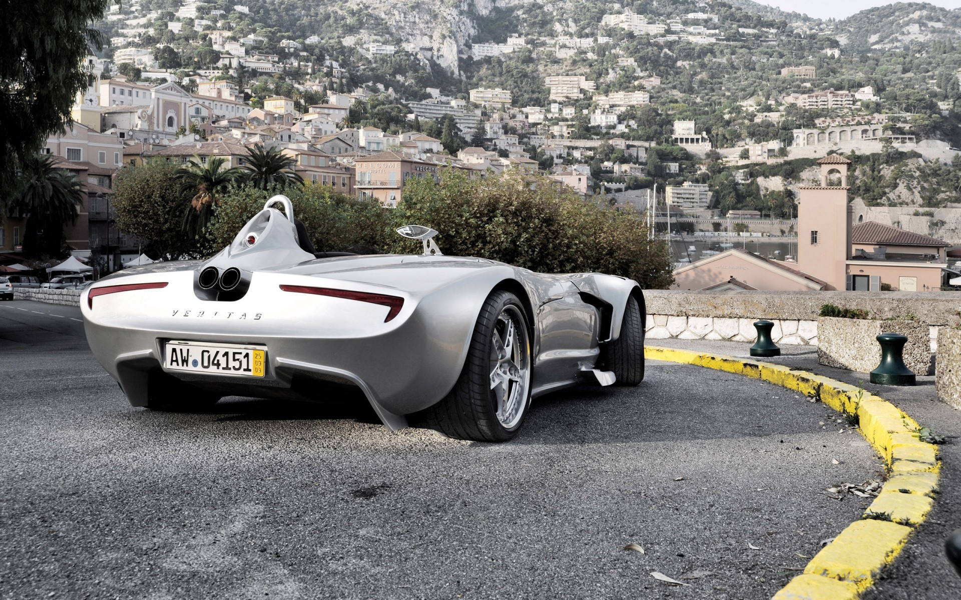 Sports car near a country house