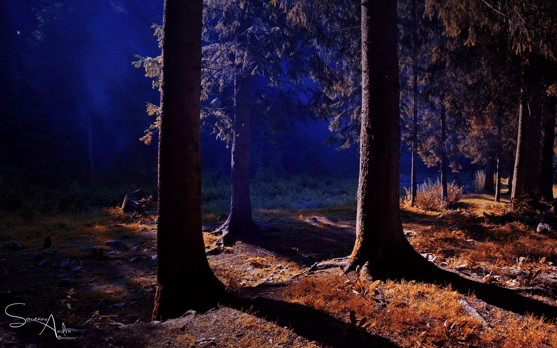 Landscape of the autumn night forest