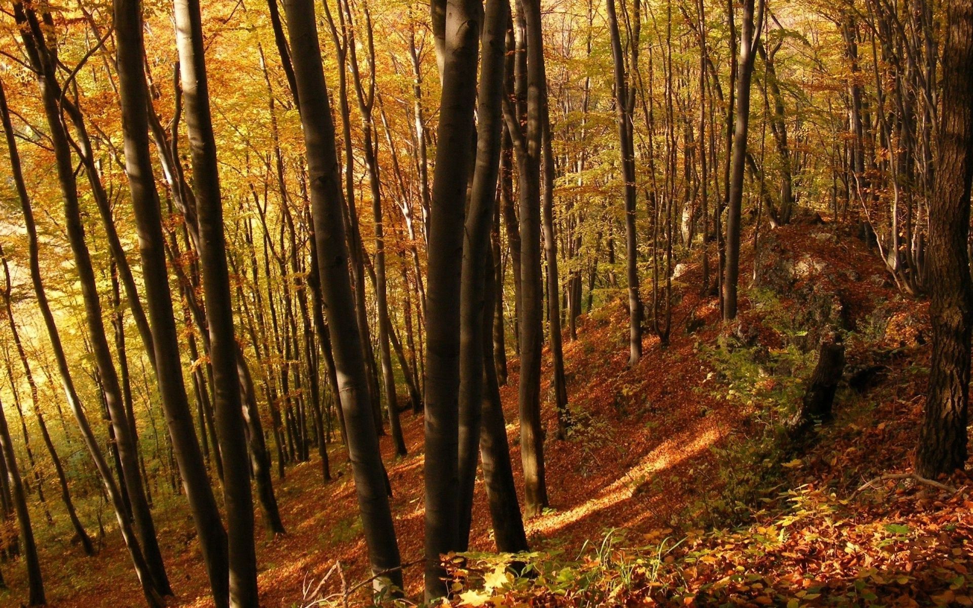 AUTUMN SUN ILLUMINATES A RARE FOREST