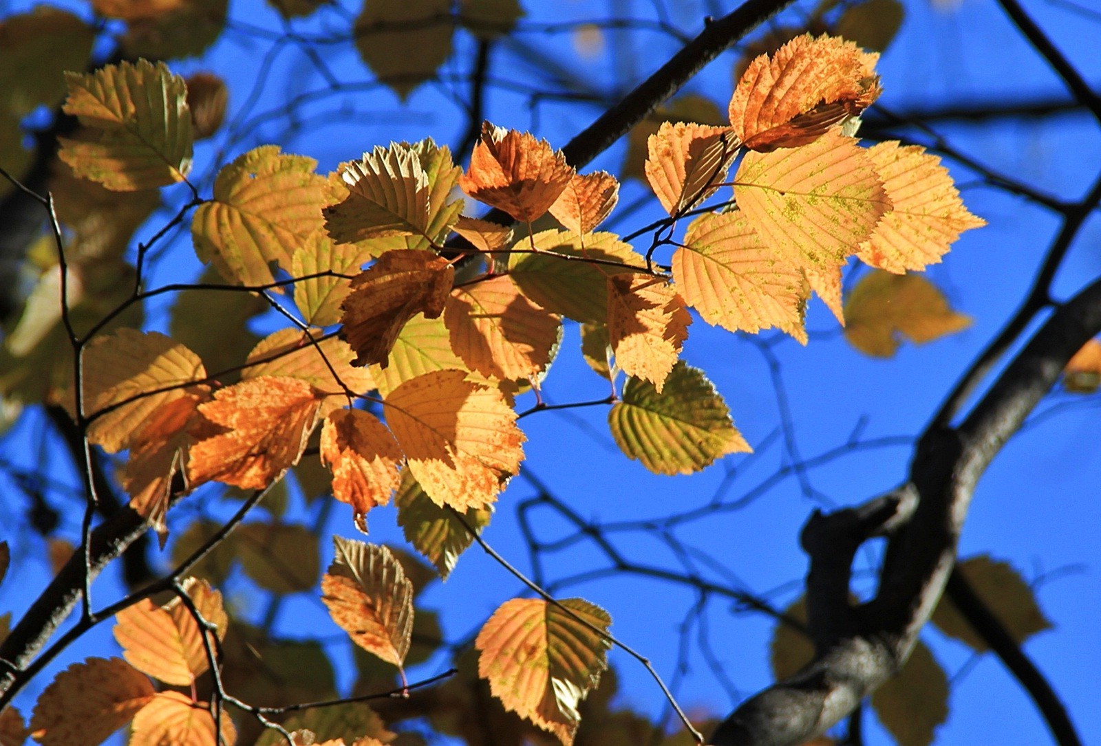 Autumn multicolored leaves of bard, crimson, brown flowersAutumn multicolored leaves of bard, crimson, brown flowers