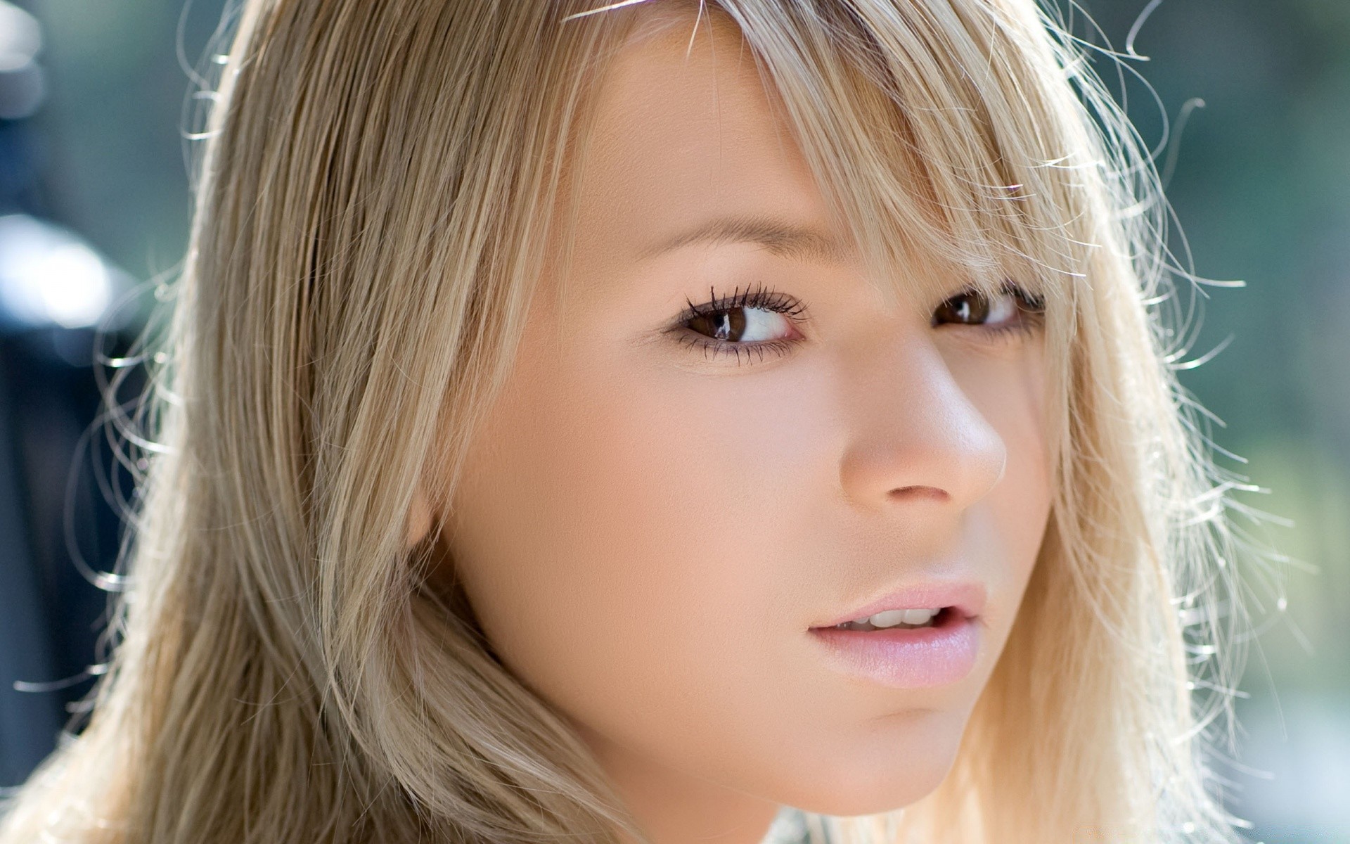 Photo of a brunette with bangs is beautiful