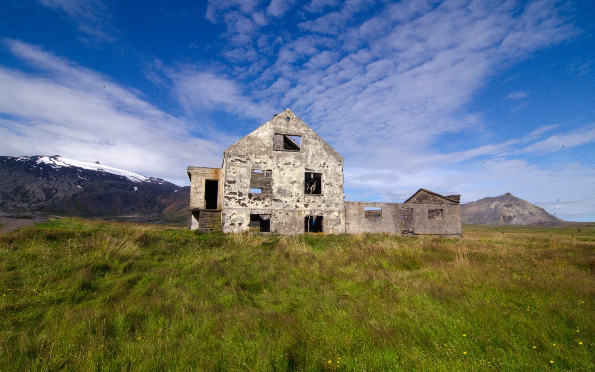 A lonely house, a tree and a cloud in a field