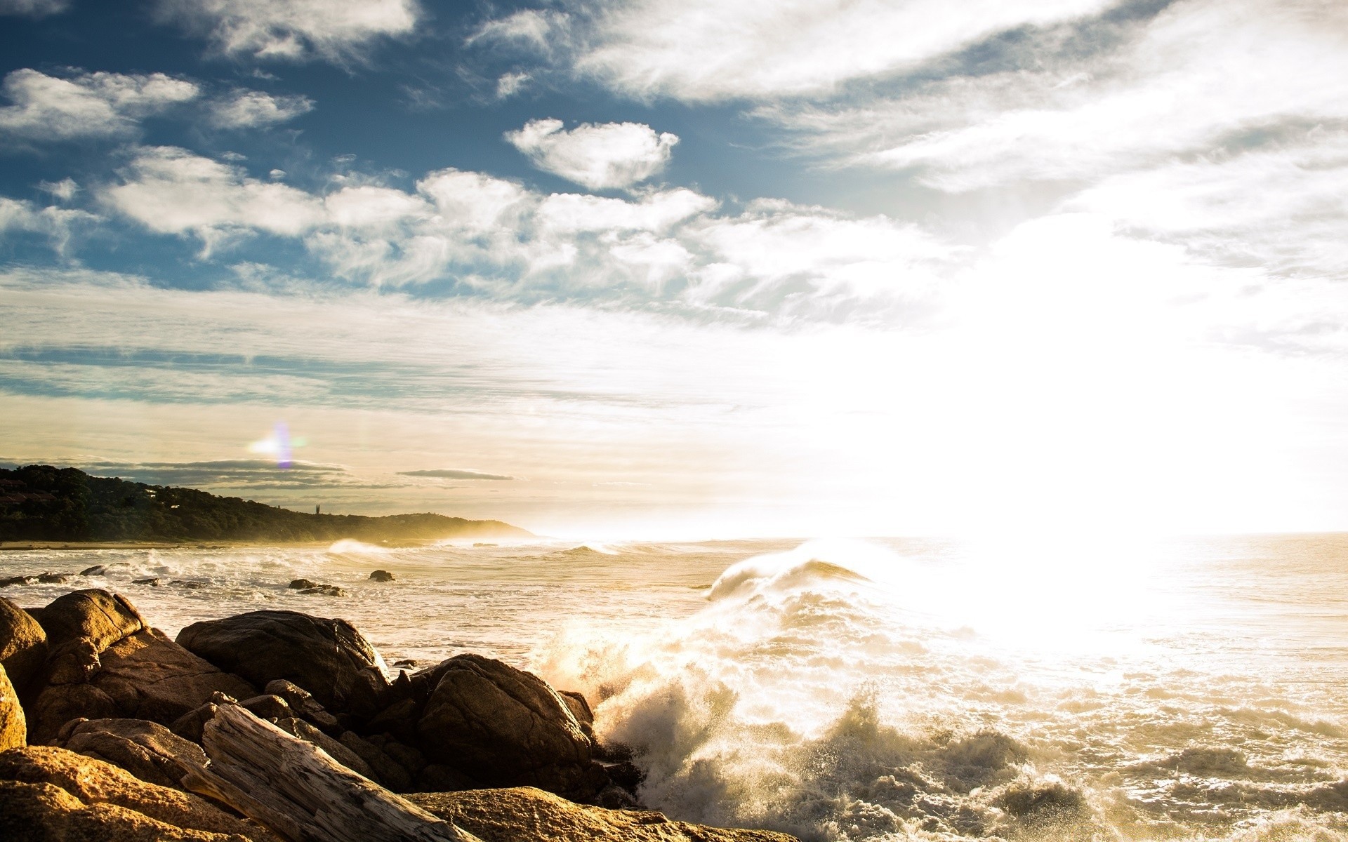 Standing on the beach, the bright sun shines so pleasantly in your eyes