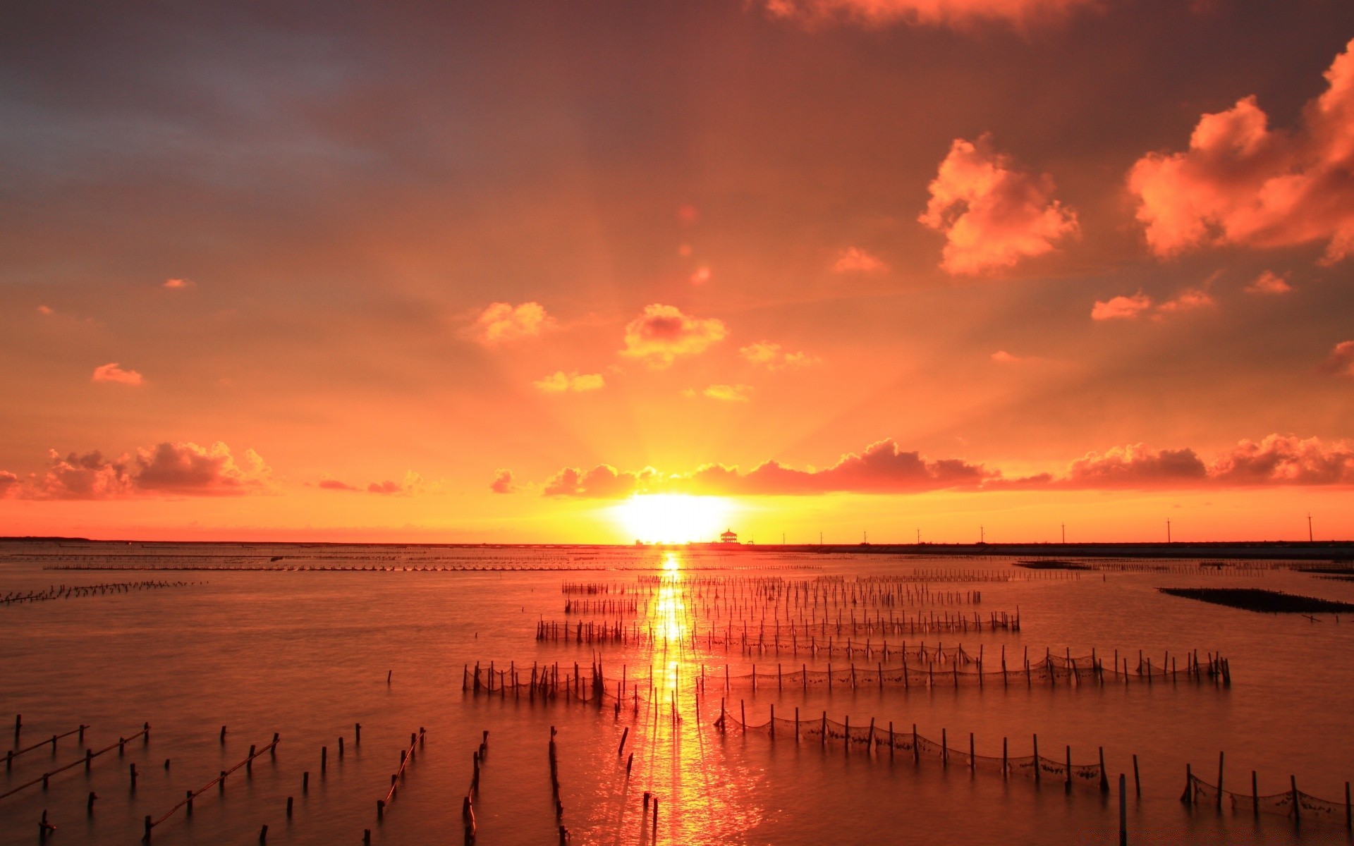 Bright sunset at the seashore
