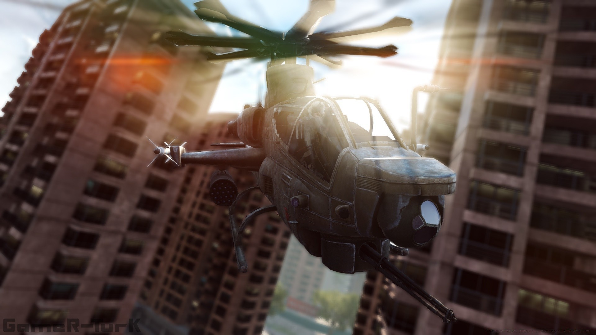 Powerful helicopter on the background of skyscrapersPowerful helicopter on the background of skyscrapers