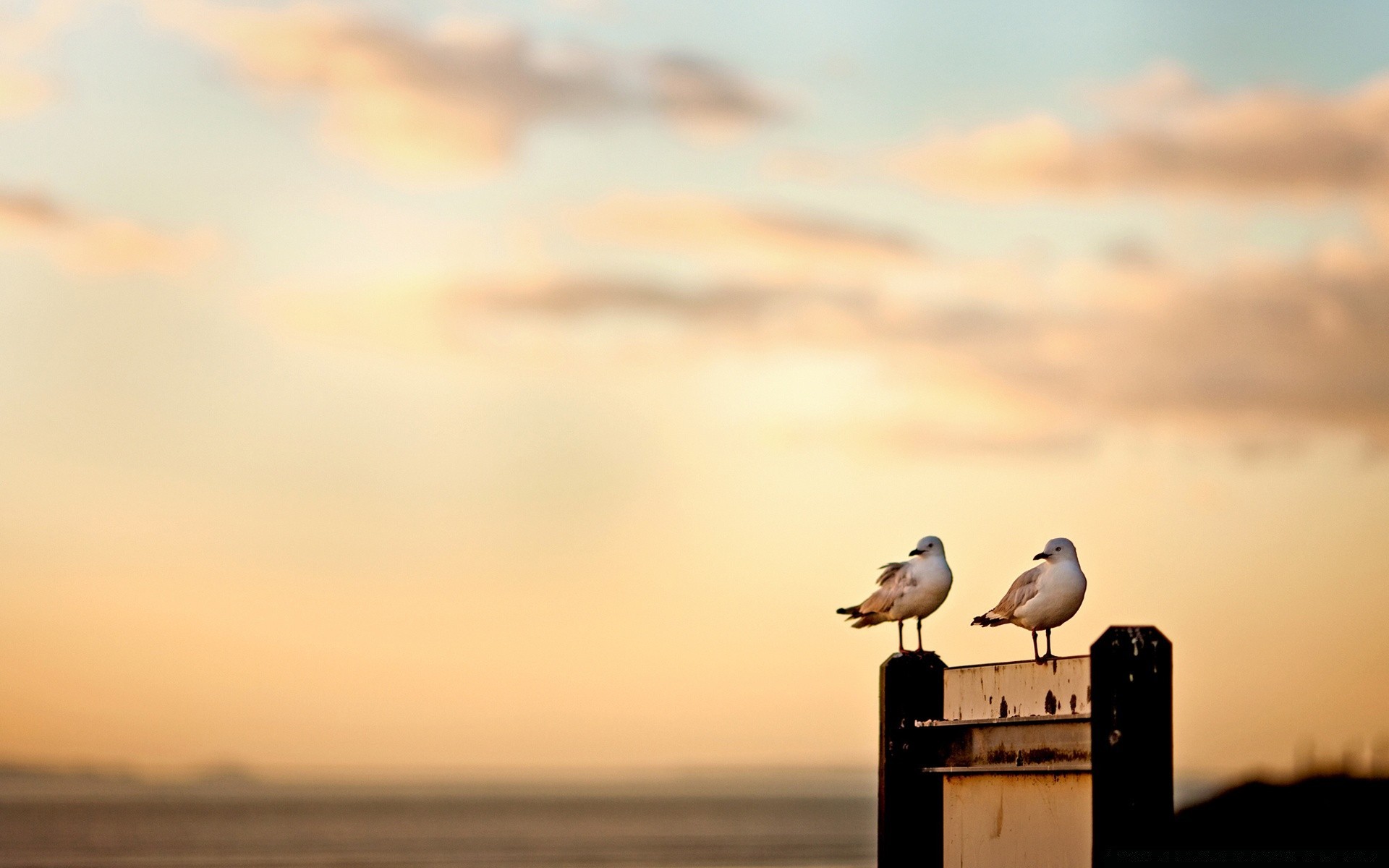 Two seagulls on a sunset background