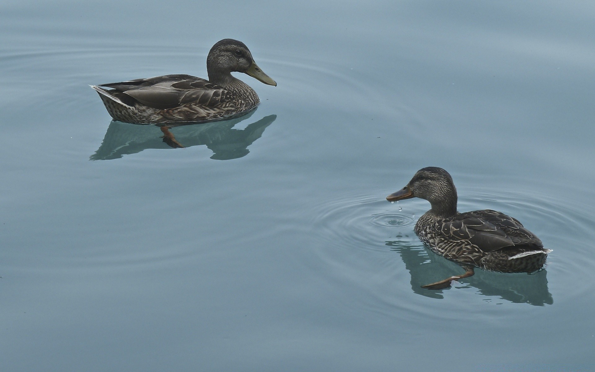 Two ducks floating on the surface of the water
