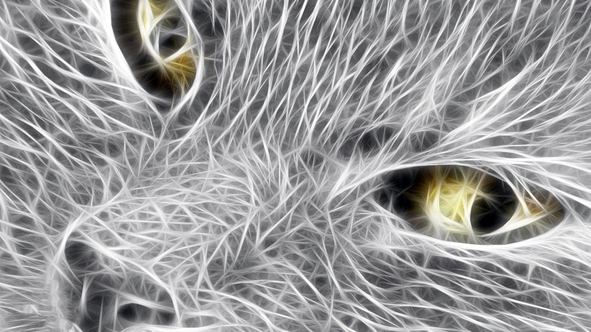 A furry predator with yellow eyes